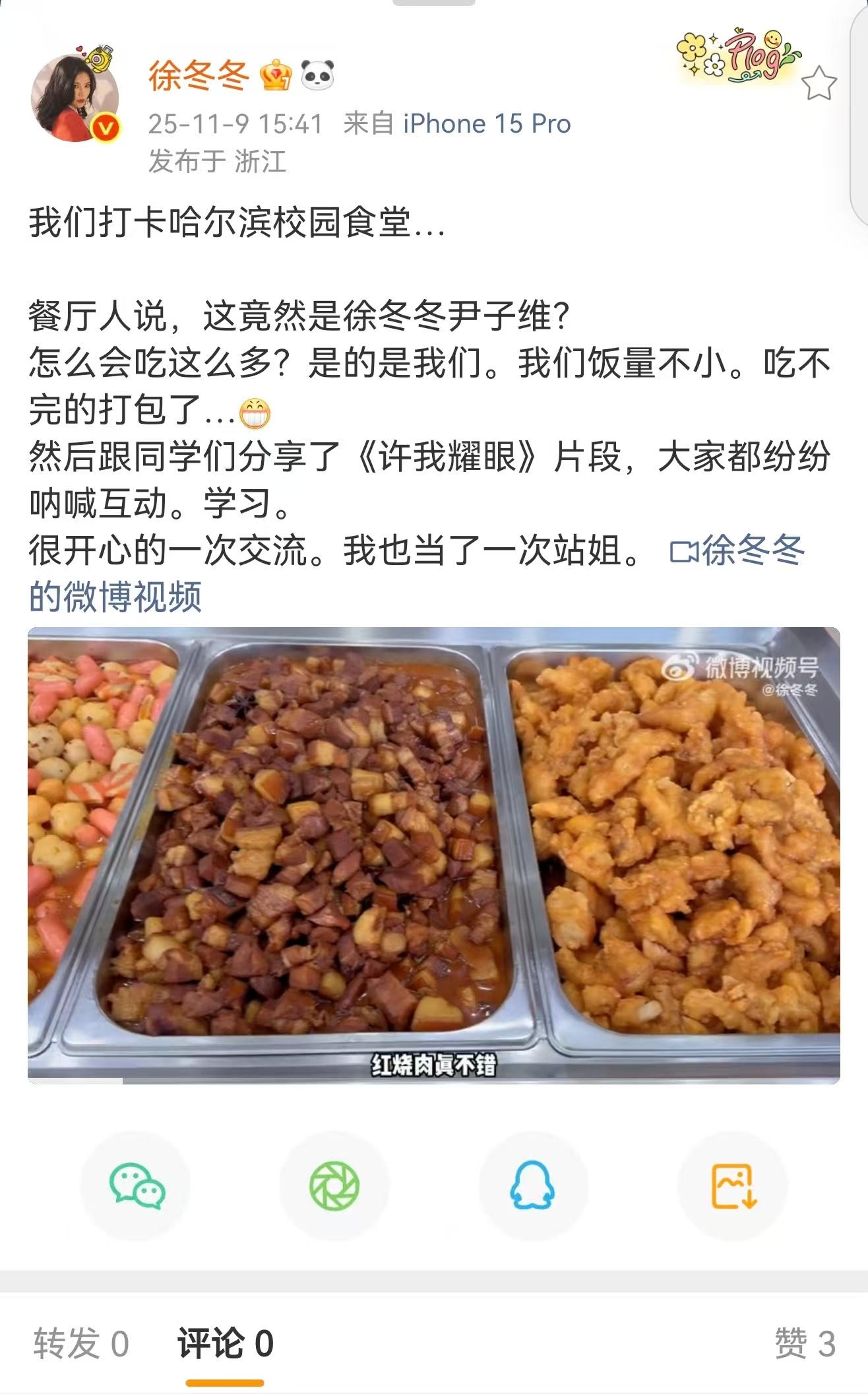 食堂工作人员震惊尹子维徐冬冬饭量这就是东北美食的威力吗[哇]尹子维徐冬冬在尔滨食堂吃饭,点的菜桌子都快放不下了,难怪食堂工作人员都感到震惊,这哪里是明星的饭量[傻眼]