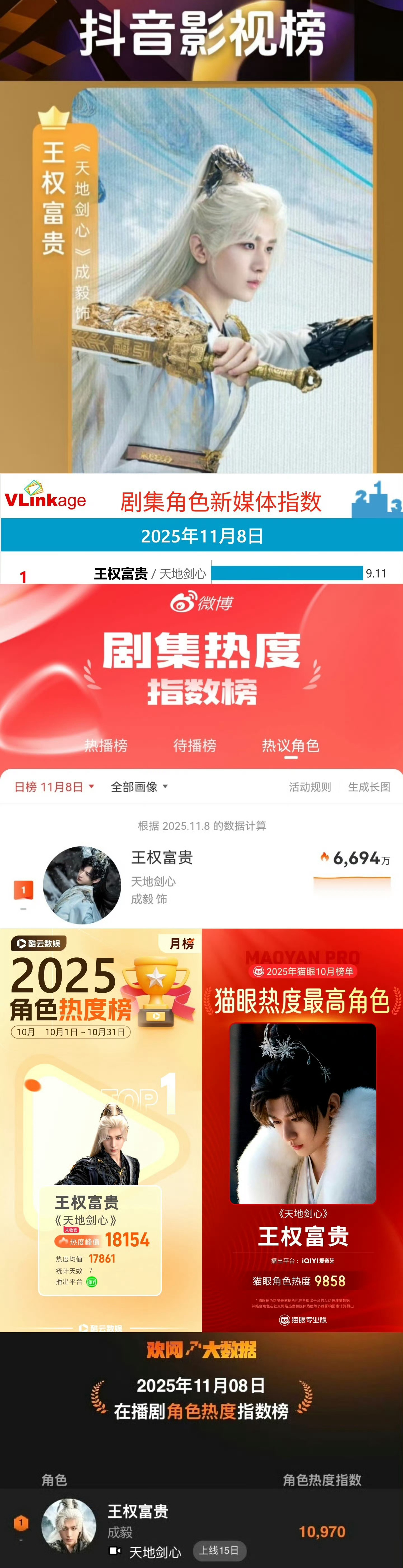 成毅天地剑心王权富贵霸榜全网角色热度第一,天地剑心全集有广完美收官!成毅扛剧能力