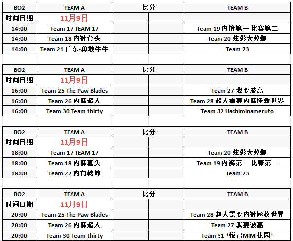今天"内裤杯"社区赛的赛程安排,大家比赛加油!