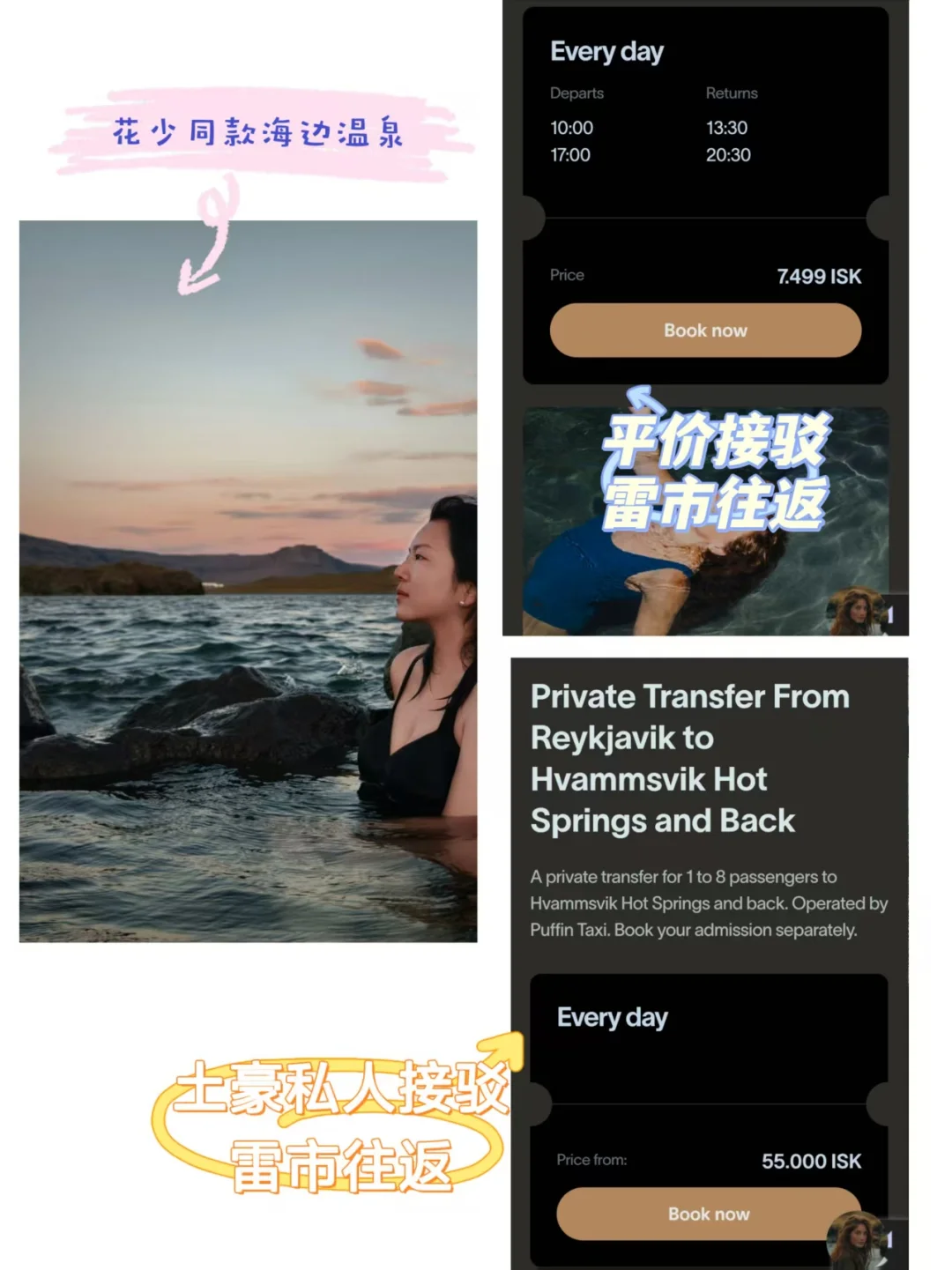反正我不喜欢蓝湖,人太多,下饺子,推荐Hvammsvik Hot Springs,花少同款海边温泉,最神奇的体验是,一边泡完全,一边感受冰凉海水打在脸上的感受~人生奇感。