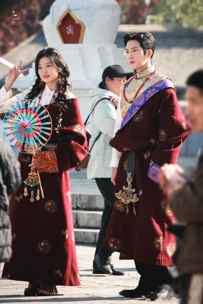 井柏然孙千早春晴朗藏服造型井柏然孙千藏服路透 藏袍加身自带滤镜,两人同框满是异域浪漫,这组路透直接刷新对藏服造型的期待。