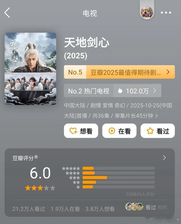 成毅天地剑心豆瓣开分6.0