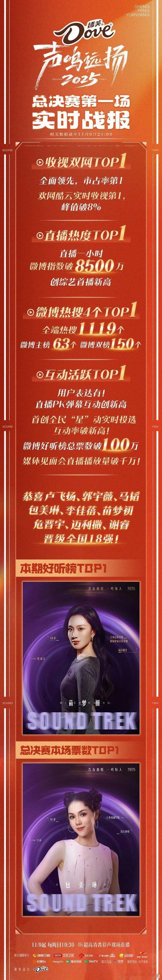 声鸣远扬直播收视率声鸣远扬 热搜屠榜!微博4个TOP1+全网1119个热搜,《声