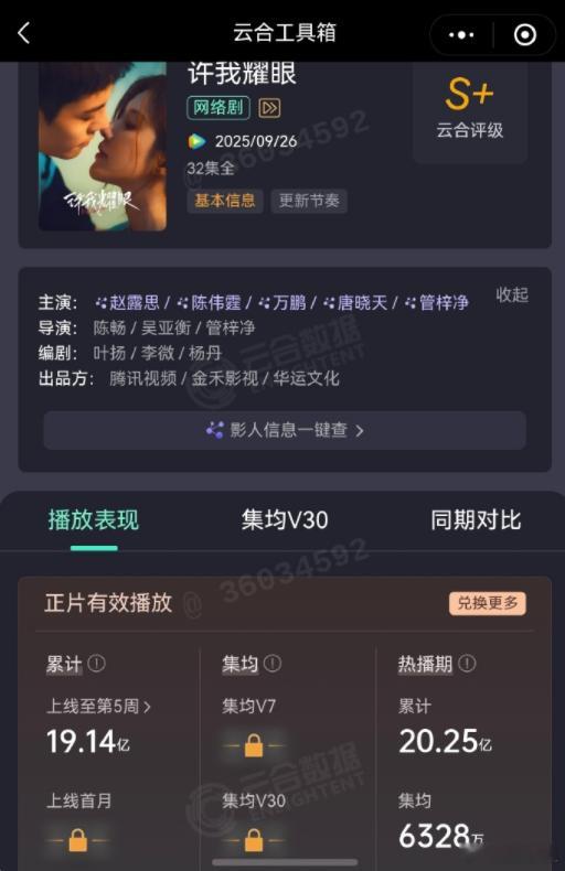 许我耀眼集均6328万赵露思、陈伟霆《许我耀眼》热播期集均6328万,2025年唯一一部集均突破6000万的剧,这成绩太牛了[good]