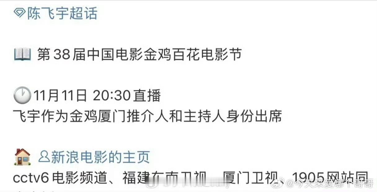 陈飞宇作为金鸡厦门推介人和主持人身份出席陈飞宇金鸡推介人主持人陈飞宇金鸡推介人主持人,好的,[爱慕][爱慕]