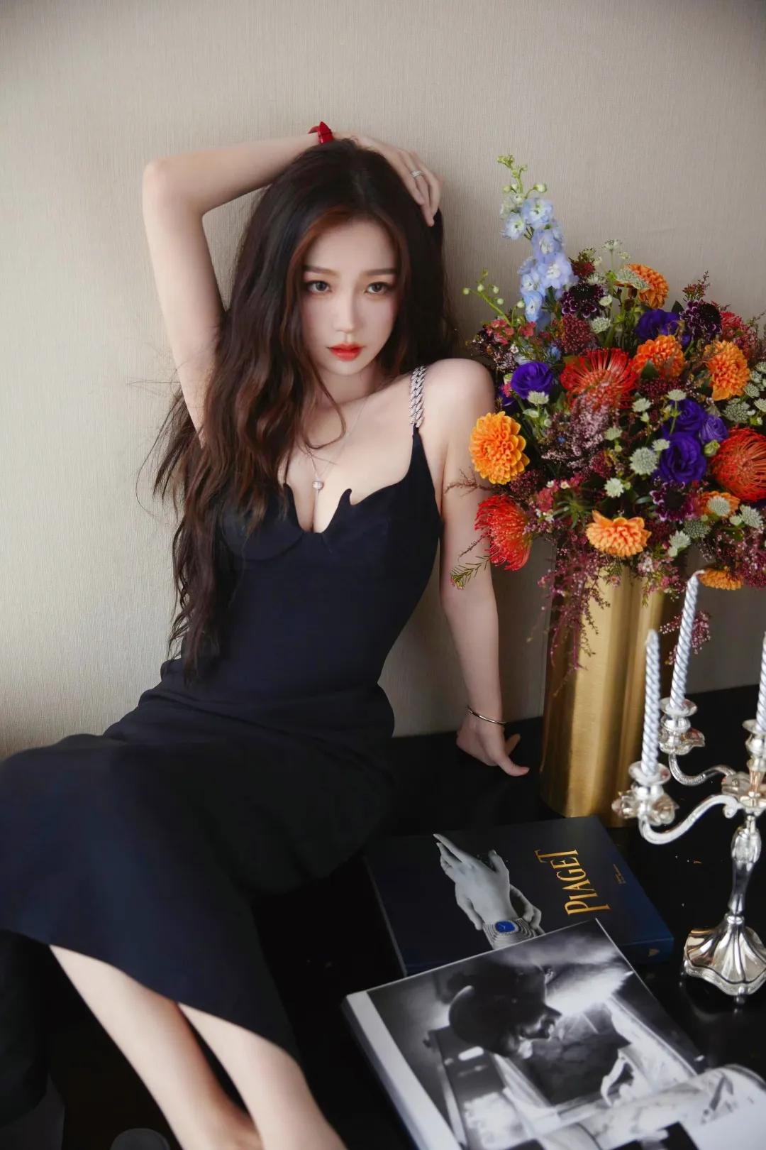 女星写真|虞书欣,黑裙红唇,是心动的具象化。