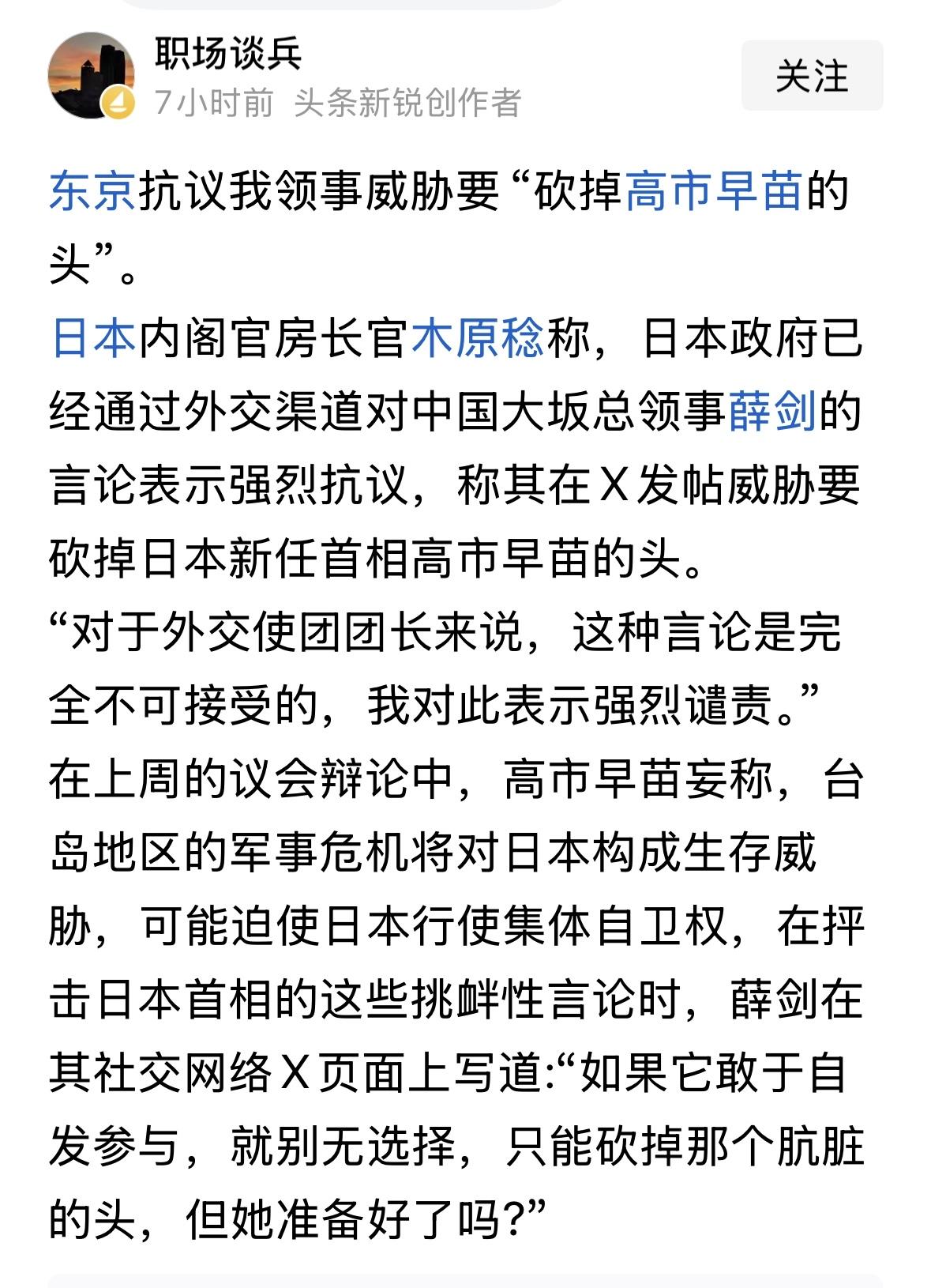 谁说是砍高市的头啊??她也配,如果武统日本敢插手,那就毁其宗社,绝其苗裔!!