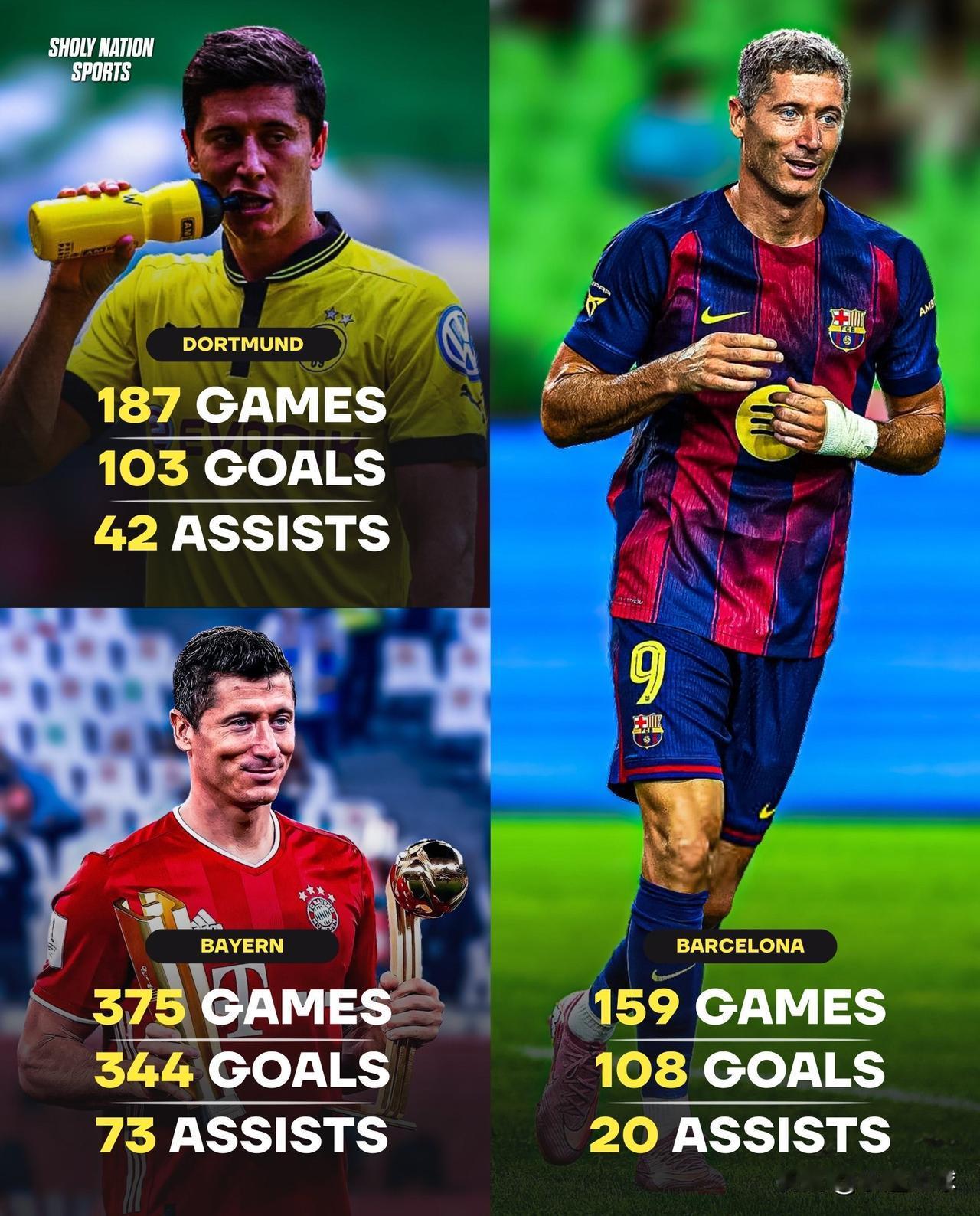 莱万多夫斯基的数据足以说明一切! 🇪🇸 巴塞罗那时期:108粒进球,20次助攻 🇩🇪 多特蒙德时期:103粒进球,42次助攻 🇩🇪 拜仁慕尼黑时期:344粒进球,73次助攻 当之无愧的王者!