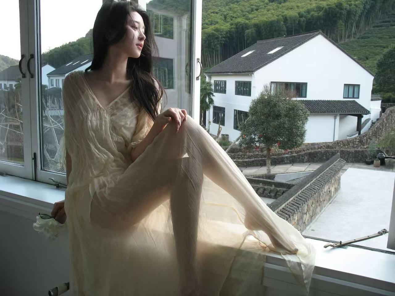 晒图笔记大赛衣袂如幕遮窗台,白墙黛瓦映佳人。
