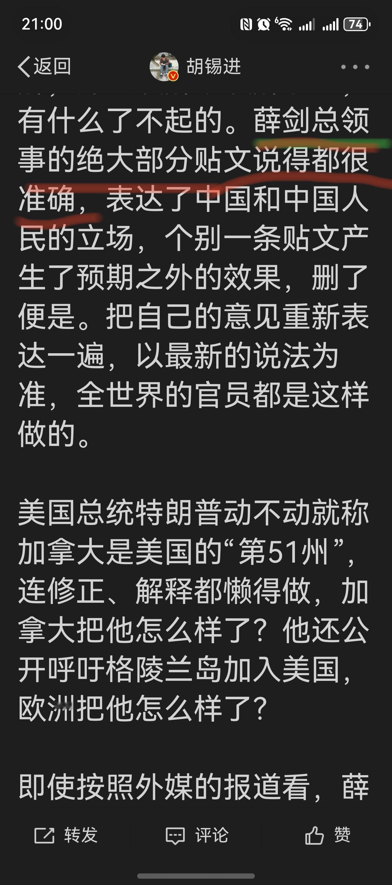 别再胡说八道了!胡前总编辑的立场很有问题 ,到底是替谁在说话?中国驻日本大阪总领事薛剑说的有什么错?“那种肮脏的头就应该毫不犹豫斩掉。”这只是针对日本极右势力干涉我国内政,妄图以武力阻挠台海统一的正义之言,何错之有?胡前总编辑只以为说的是公道话,其实是大错特错,立场大有问题,作为中国的媒体人不该和稀泥,试图两边落好,应该立场鲜明的反对一切干涉我国统一大业的任何势力。薛剑总领事没有错!错的是你胡大前总编辑!让人误解的也是你胡大前总编辑!