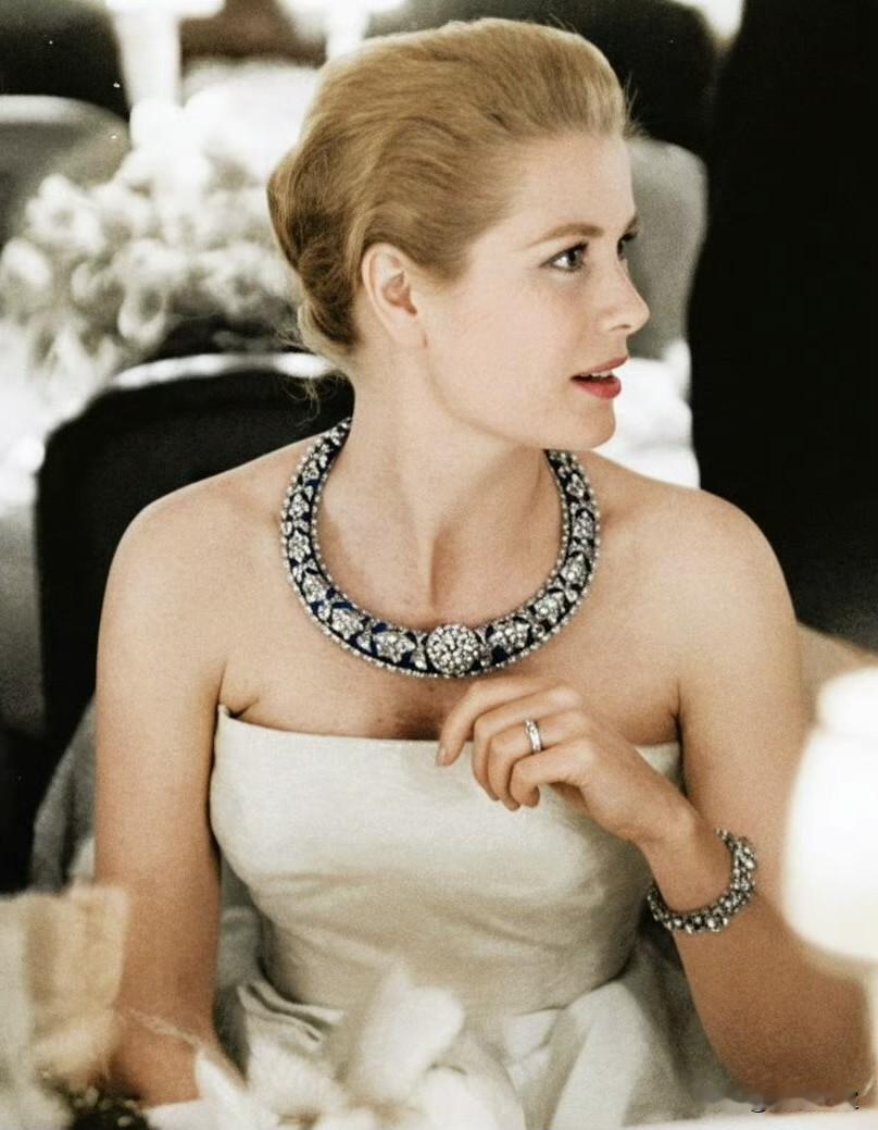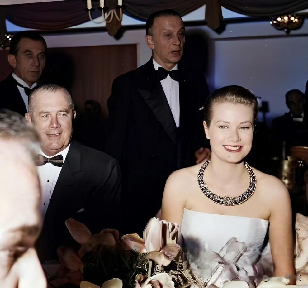 经典镜头回顾!摩纳哥王妃格蕾丝。 1959年,30岁的格蕾丝王妃出席体育俱乐部的复活节晚宴,当晚她一身白色抹胸长裙搭配丸子头亮相明艳动人! 虽然格雷丝王妃佩戴的珠宝有些耀眼,但和她的气场服装完美呼应,现在回顾每一个镜头都很美。 值得一提的是,这场活动同场的还有她的亲爹老约翰·凯莉。