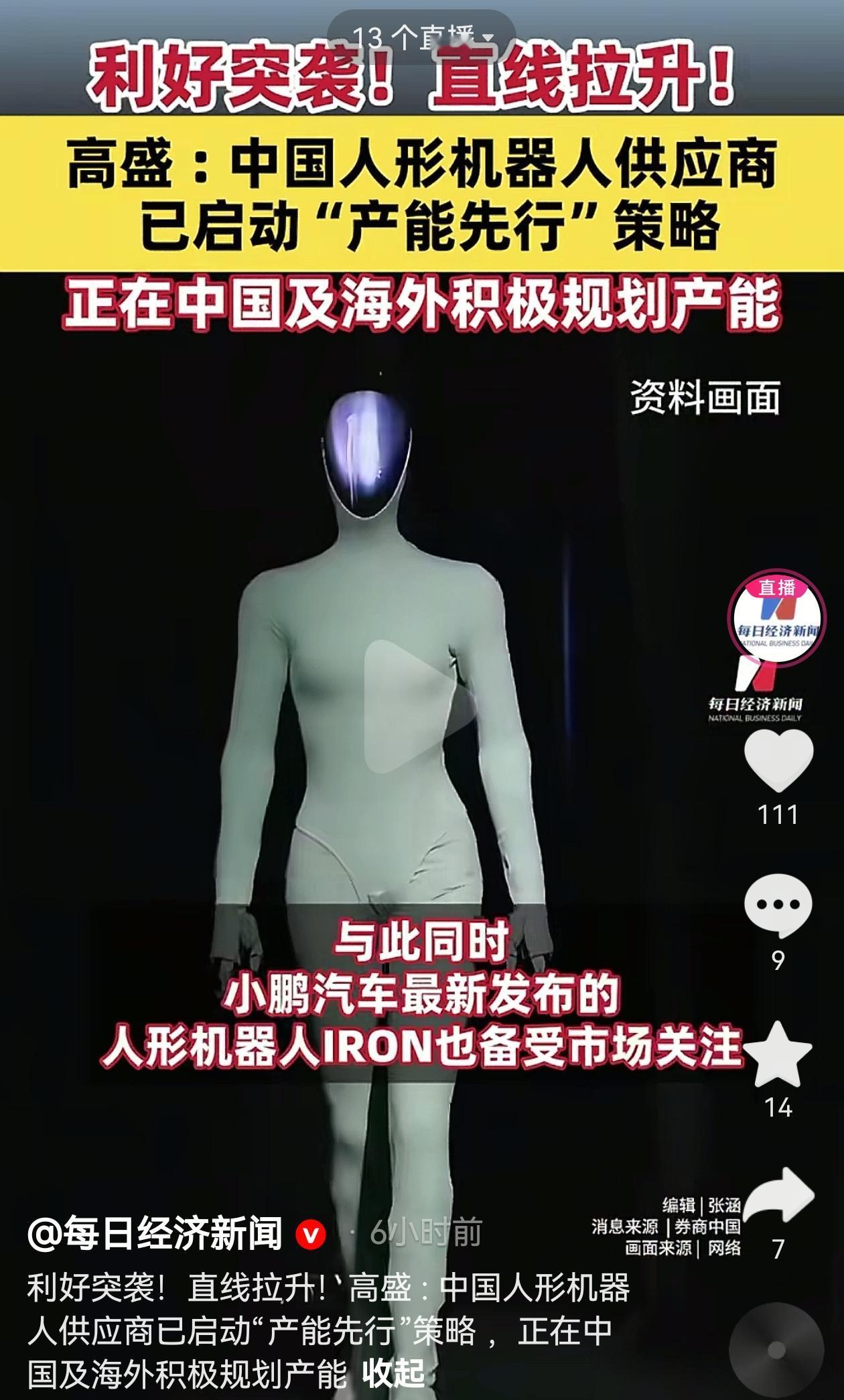 小鹏汽车昨晚美股大涨16%。“小鹏,才是最像特斯拉的中国车企。特斯拉在2015年建立OpenAI,2021年发布Dojo训练芯片,2023年推出Optimus机器人,特斯拉花了十年形成从芯片、模型到机器人的一体化体系,而小鹏在短短两年内,已建立自研算力平台、AI大模型与三大具身智能产品。从追赶到对标,小鹏与特斯拉的较量,已经超越了简单的模仿与被模仿关系。它标志着中国车企在核心科技领域首次与全球巨头站在同一起跑线,并且有望参与定义“物理世界AI”的落地规则。”