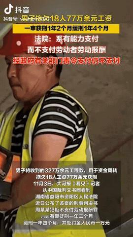 湖南益阳,一老板拿到那笔327万工程款后,却不给18名工人发工资,他直接把这些钱来周转其他项目,工人们无奈起诉他到法院,最终他被判一年二个月有期徒刑,缓刑一年四个月。网友:早知如此何必当初啊。 信息来源:大河报 这事儿要追溯到2024年7月。 张老板拿到那笔327万工程款,明明合同上说人工费用要专款专用,可他偏偏心里打算盘:这钱留着能做下一个项目更香。 工人们一个个干活得顶着大太阳,干完就催工资,他就一句“资金紧张,再等等”。 可他换身衣服开着小车到处应酬,根本没打算给工人发工资。 工人们没法子,只能先温和沟通,又跑去劳动部门投诉。 2025年1月,益阳市资阳区人社局专门给张老板送了一份《劳动保障监察限期改正指令书》,明确告诉他:必须限期足额把欠款补上。 可张老板依旧当作耳旁风,依旧把钱挪到其他项目周转,根本不当回事。 从法律角度看,张老板拿到工程款后故意转移资金,就是“以转移财产方法逃避支付劳动报酬”,主观上明摆着要赖账。 客观上,他拖欠了18个工人77.9万,早就超过了“拒不支付十名以上劳动者报酬且累计三万元以上”的入罪标准。 就这样,法院在2025年11月3日以拒不支付劳动报酬罪,一年二个月有期徒刑,缓刑一年四个月,并处罚金一万元,宣布张老板构成犯罪。 说起来,也不是没机会补救。 早在2024年9月,工人代表夏师傅就偷偷对账,发现工程款陆续到账后,张老板把80万还了房贷,100万投了长沙新项目,47万直接买了辆SUV,却告诉工人“车是贷款买的”。 直到警方调了银行流水,这猫腻才彻底暴露,刑事程序才一路推进。 2025年9月,多部门联动,终于把那77.97万工人工资全都追回来了。 工人们拿到钱,才敢放下心来:有人拿去给孩子交学费,有人先把拖欠的药钱、生活费一并补上。 说白了,就是要让咱老百姓的血汗钱不再被随意挪用。 这件事之所以引发热议,不只是因为欠薪数额大,更关键的是法律底线已经划清:工程款里头的人工费必须专款专用,用人单位敢挪用,就可能面临刑事处罚。 社交媒体上“早知如此何必当初啊”成了热评,大家都希望用法律武器保护劳动者权益。 这事给我们敲响了警钟:劳动者要留好合同、工资条、银行流水,讨薪时可向劳动保障监察部门投诉,也可以直接到法院起诉,证据齐全胜算大。 用人单位记住工资都得按时发,别拿工人工资当自家“流动资金”。 而企业要搭建合规体系,工程款该付工资的一定先付,不然不仅欠下人情债,还得背刑事责任。 拿别人的血汗钱一时能壮胆,最后却会把自己逼进绝路,结果面临的是法律的惩罚,一旦出事了后悔莫及。 希望更多老板引以为戒,别把工资当“自留地”,把人当“次要角色”,不得拖欠工人工资或者不给工资,做人要诚实守信,否则得不偿失,最后自食恶果。