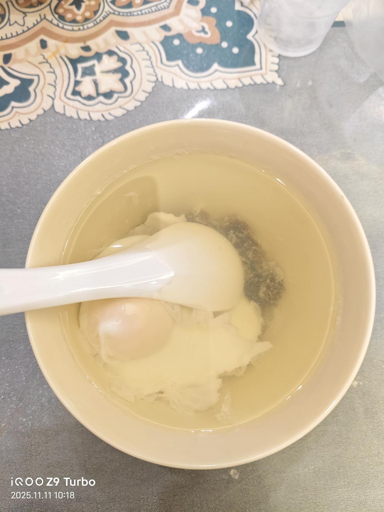 清晨来上这么一碗糖水蛋配红糖,简直幸福感拉满!白白嫩嫩的溏心蛋在勺里颤巍巍的,咬一口蛋黄沙沙流心,混着清甜的糖水和红糖的焦香,暖乎乎从喉咙一直熨帖到胃里。就这一口,早起的困倦都被驱散了,感觉一整天都能活力满满呢!