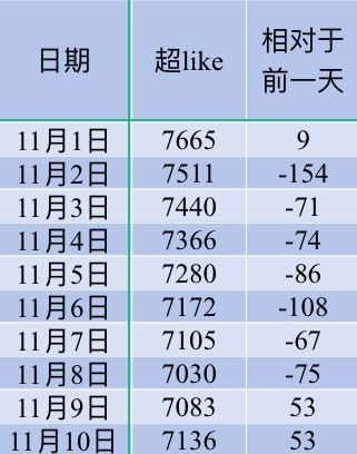 wxy 昨天的超喜欢和发帖人数还有今天的超喜欢底数都稍微的下降了一丢丢