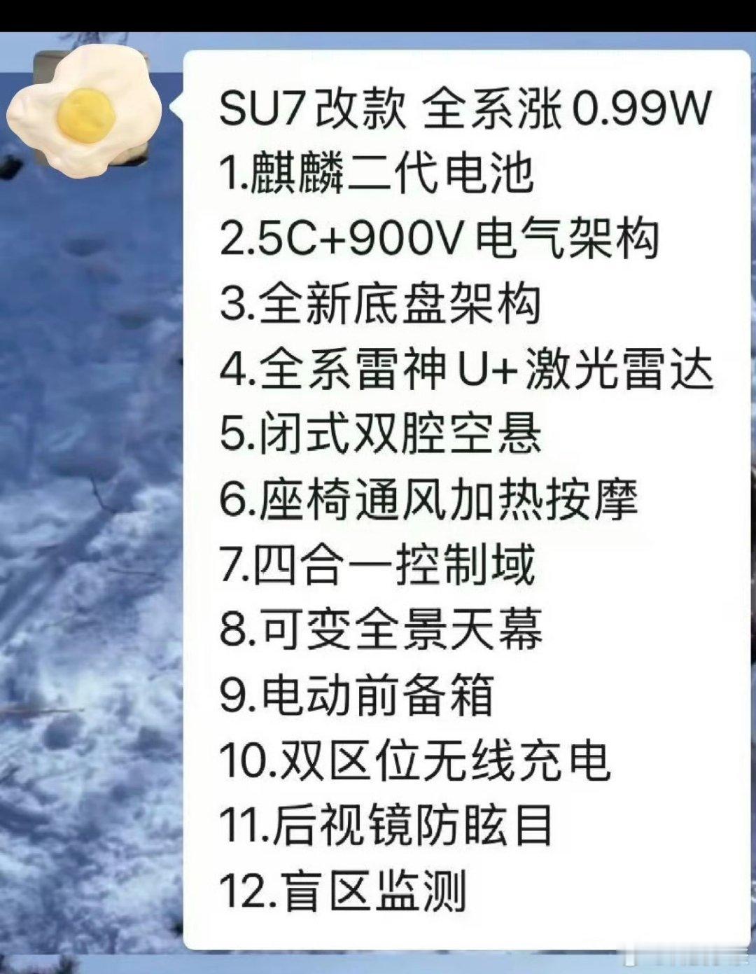 小米SU7改款涨价近1万 SU7的改款也确实该来了,从这12项升级来看,等等党终归是胜利了,盲猜又有一大波车主要改订单了[坏笑]~