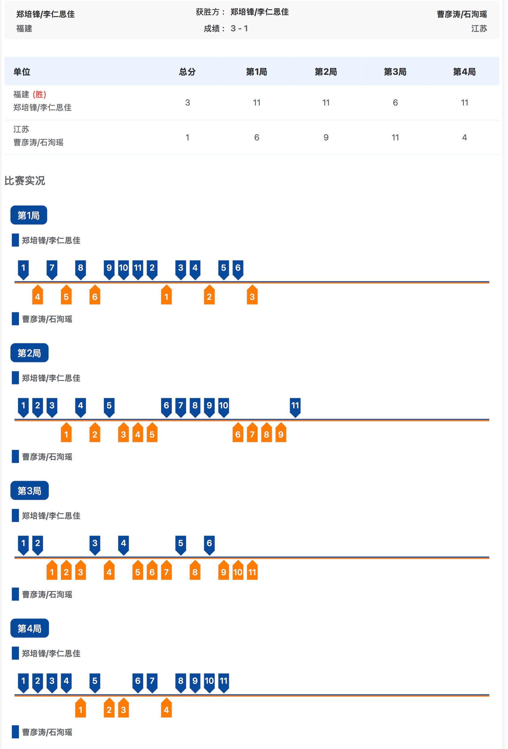 李仁思佳/郑培锋3比1曹彦涛/石洵瑶