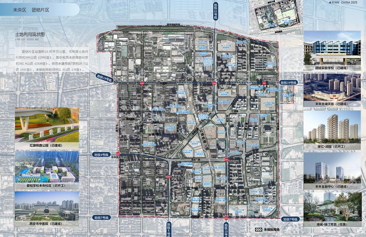 一次性释出51宗地块,未央团结片区迎来大面积土地供应。从最新规划看,约13km²区域被划分四大功能板块,本轮公布地块信息中住宅用地占比超过八成,此前已有保利、绿城、龙湖、招商等房企布局落子,而随着城市更新的推进,未来片区内人口及建设规模还将不断扩大。