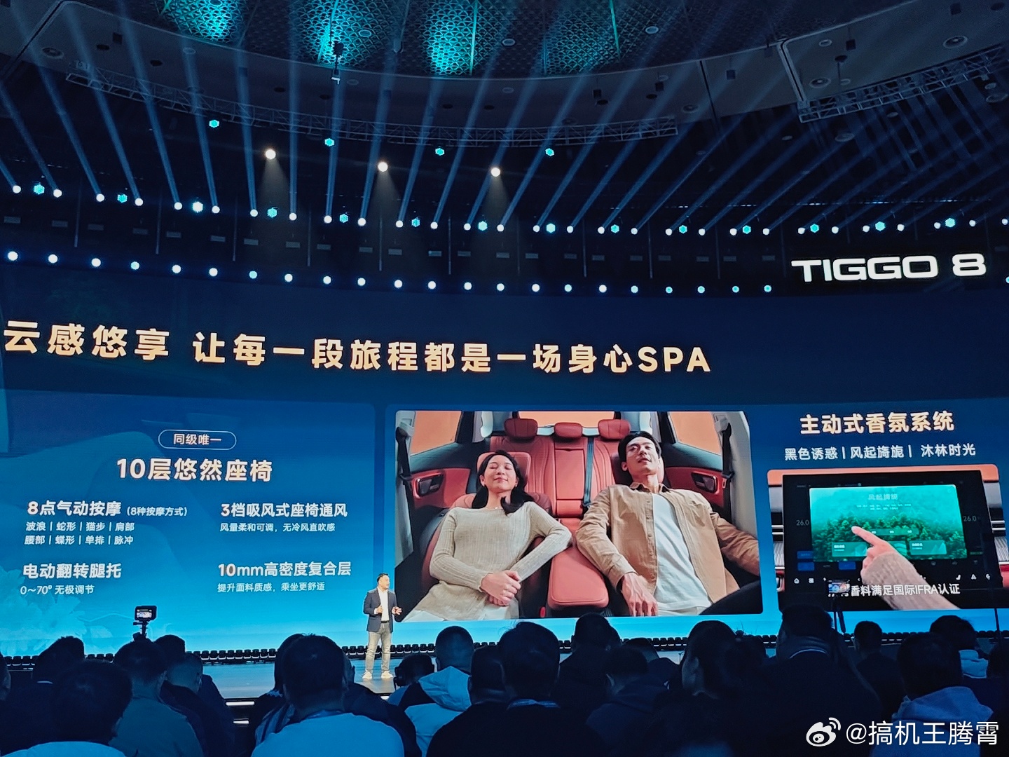 第五代瑞虎8的车长达到了4749mm、轴距2825mm,提供虎款和豹款两种前脸风格,前者横屏车机屏幕,后者竖屏车机屏幕,搭载车规级8155芯片,前挡风 + 前门用了双层夹胶玻璃,座椅还有通风按摩,车内也有香氛系统,百公里油耗7.2L,价格还是挺顶的,舒适型只要9.29万起,这价格给力吗?[并不简单]