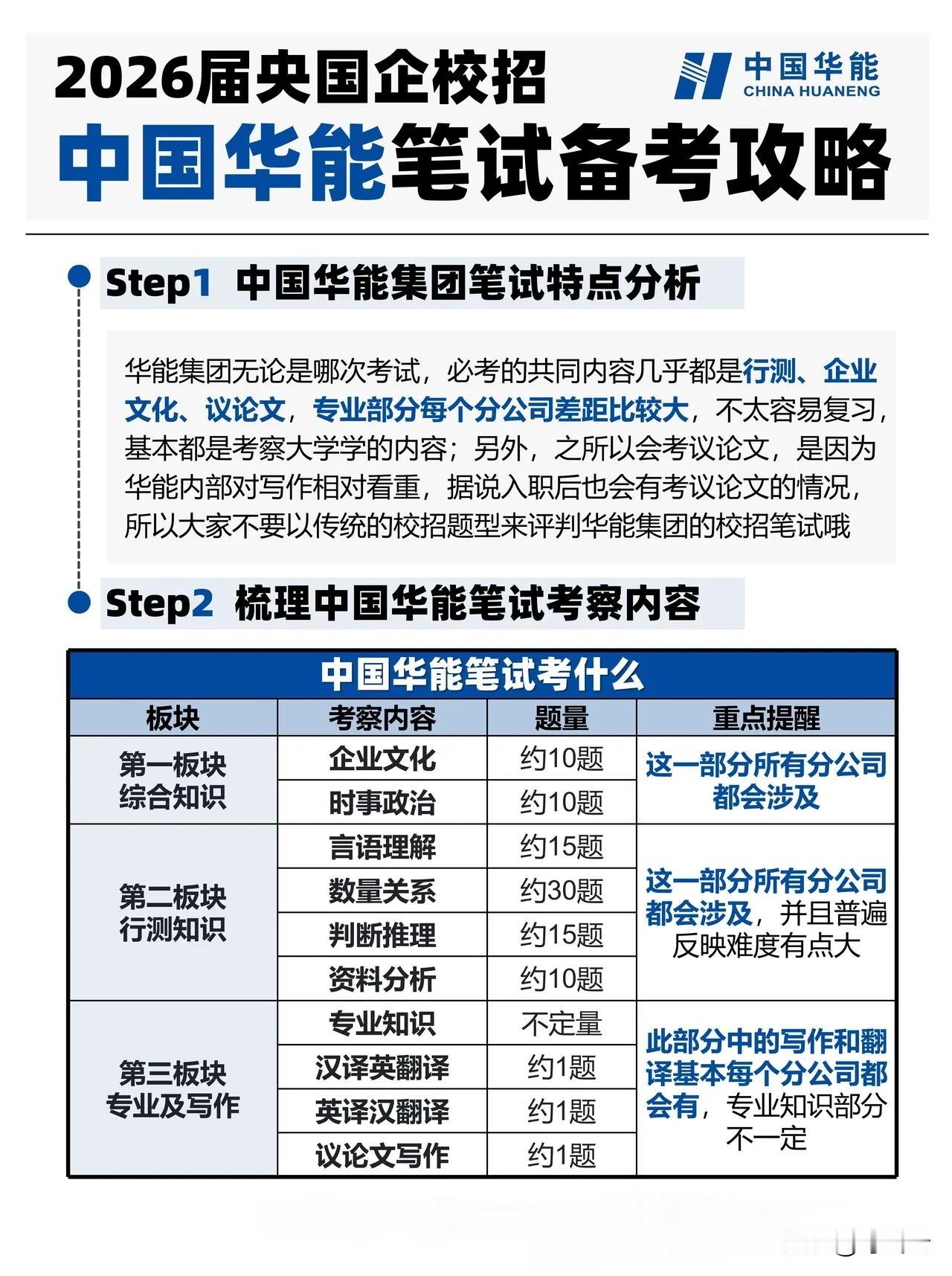 中国华能校招笔试备考攻略干货分享!一图概览,笔试分析,考试内容辅导!考试内容分为
