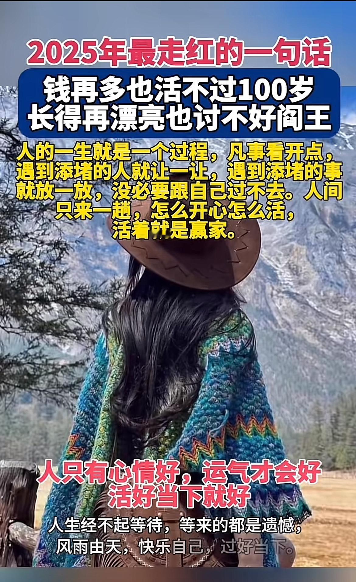 2025年最走红的一句话:钱再多也活不过100岁,长得再漂亮也讨不好阎王。