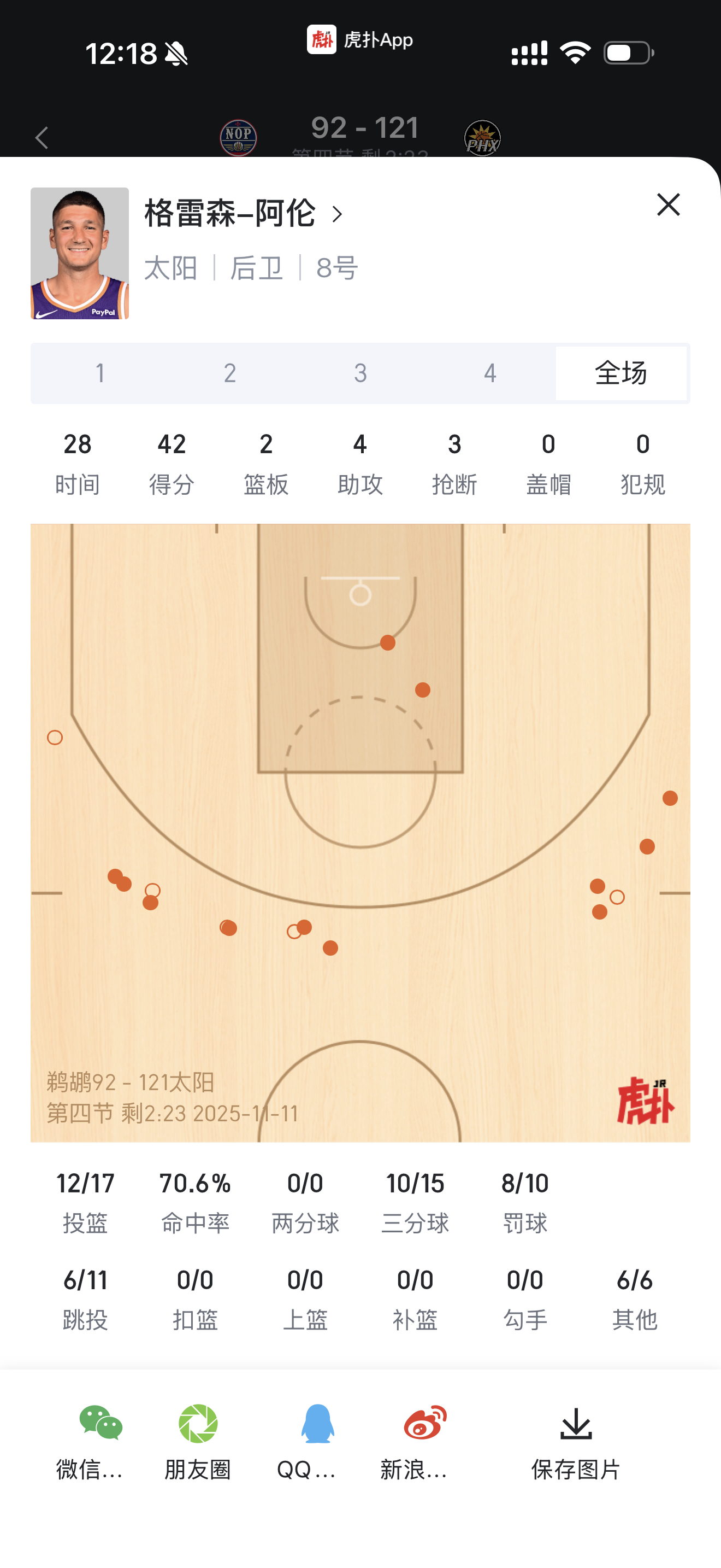 格雷森阿伦生涯之夜,42分10三分均生涯新高,10三分也是太阳队史纪录​​​