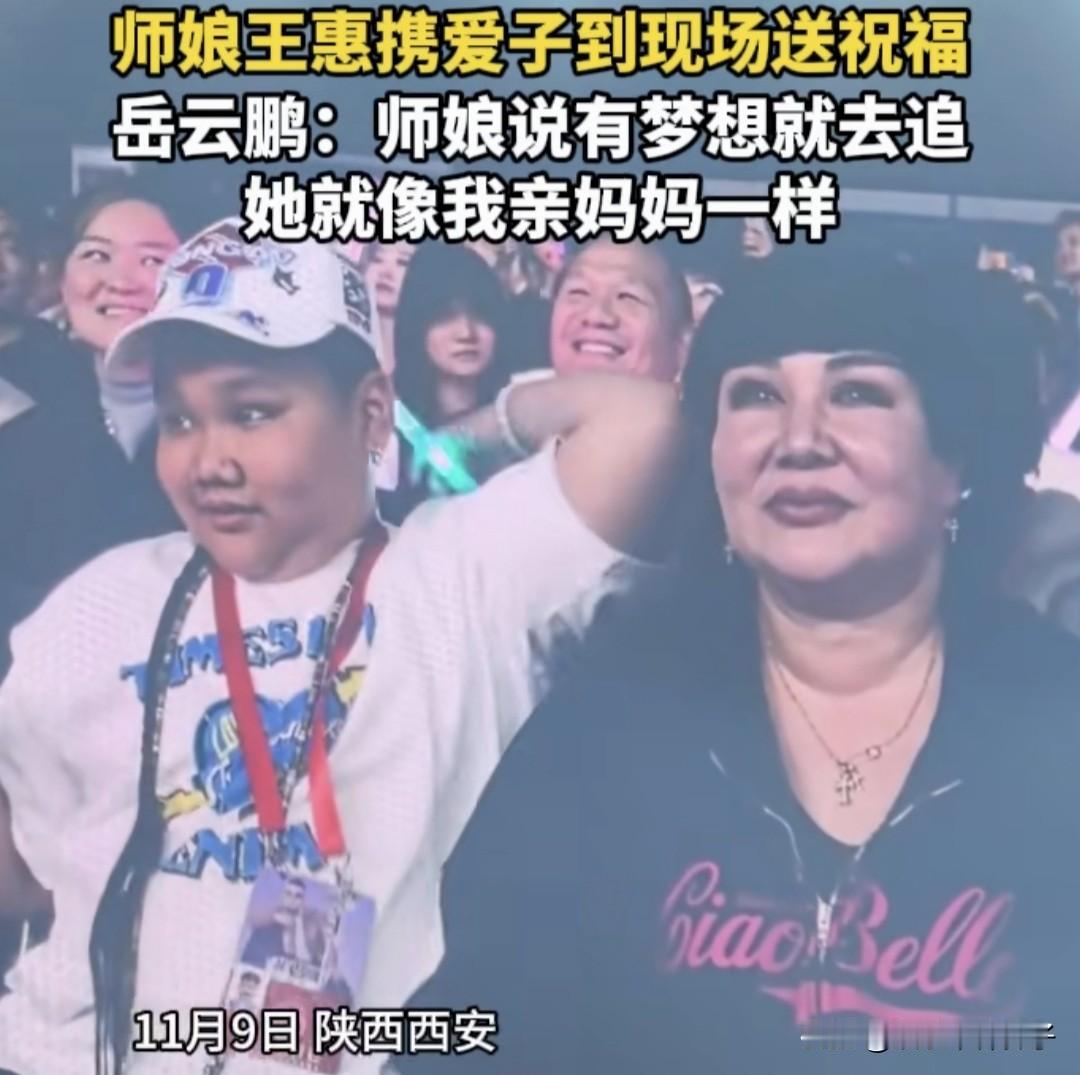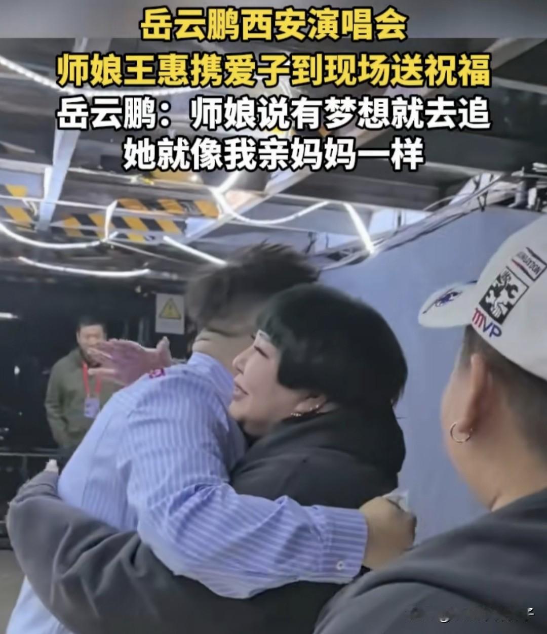 师娘王惠现身岳云鹏演唱会,小岳岳用手绢擦眼泪,两人暖心拥抱! 岳云鹏西安演唱会,现场来了两位特别的观众,王惠带着儿子郭汾阳前来助阵,镜头还特意给到母子二人。 王惠特意在视频中为岳云鹏送上祝福,而且用“儿子”称呼小岳岳,这……,说实话,有点小惊讶。 这说明了师娘对小岳岳的偏爱和器重,可见感情非常好,想必不是所有的师兄弟,都有这般待遇吧。 岳云鹏来到休息室,用手绢擦眼泪,看到王惠赶紧上前暖心拥抱,画面好感人,郭汾阳看起来格外开心,性格挺开朗。 都说男儿有泪不轻弹,或许是感动中掺杂着惊喜吧! 其实,可以理解,当初,岳云鹏官宣开演唱会,网上有很多质疑的声音,郭德纲力挺徒弟。 如今,师娘王惠亲自到演唱会现场为岳云鹏加油打气,无疑是莫大的安慰和鼓励。 其实,小岳岳完全不用在意别人的看法,为了实现梦想,只要自己开心就好。