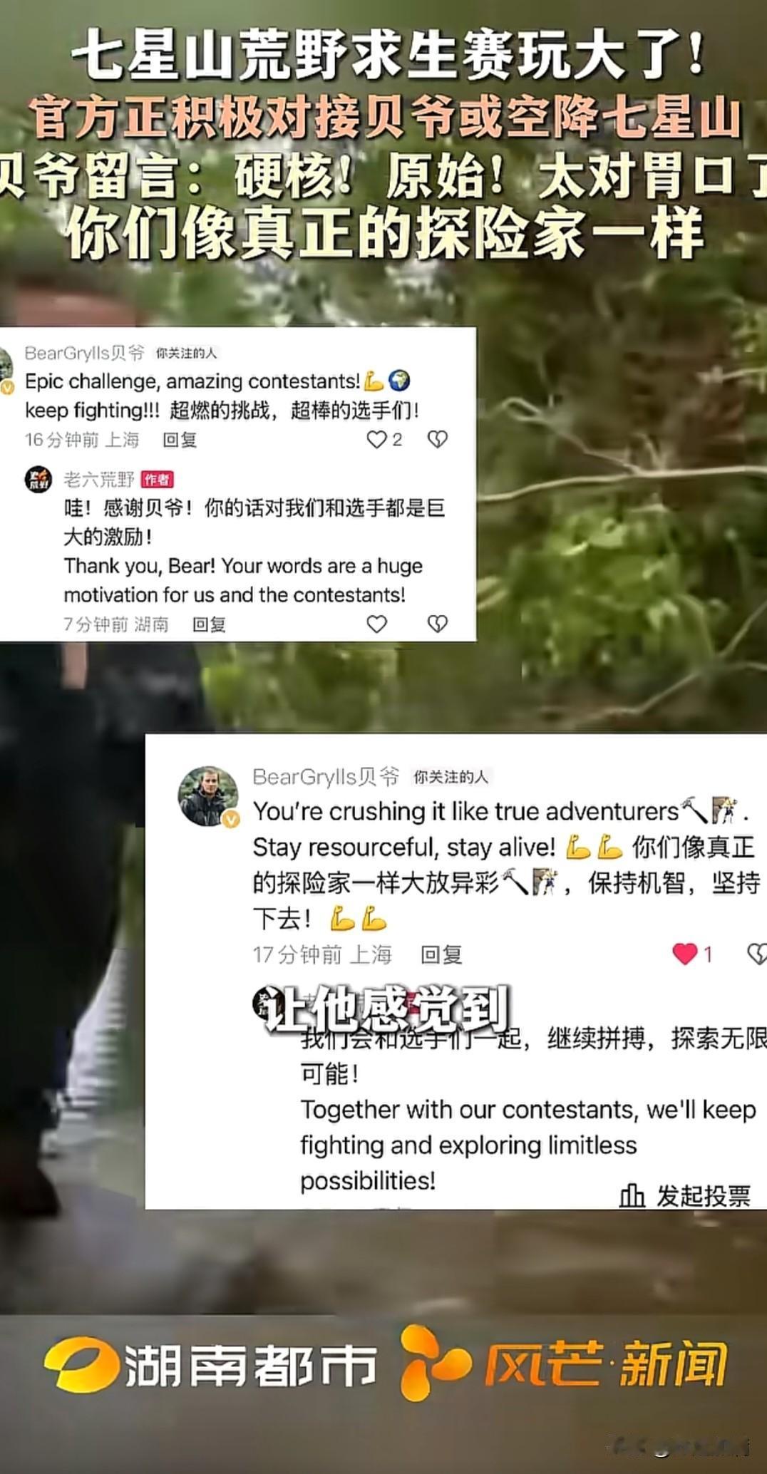 笑不活了,荒野求生节目组说要让贝爷空降七星山,这环境贝爷来了都直得直嘬牙花子,配上荒野三件套:猕猴桃,梨,山药,不知道贝爷吃这些东西,能坚持几天。 大家觉得,贝爷要是参加这个荒野求生能获得前几名呢? (来源于风芒新闻)