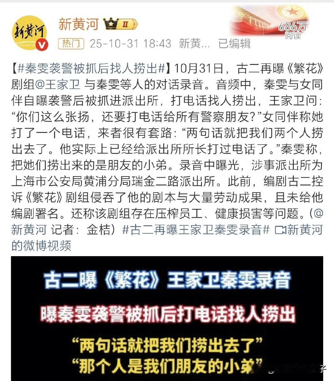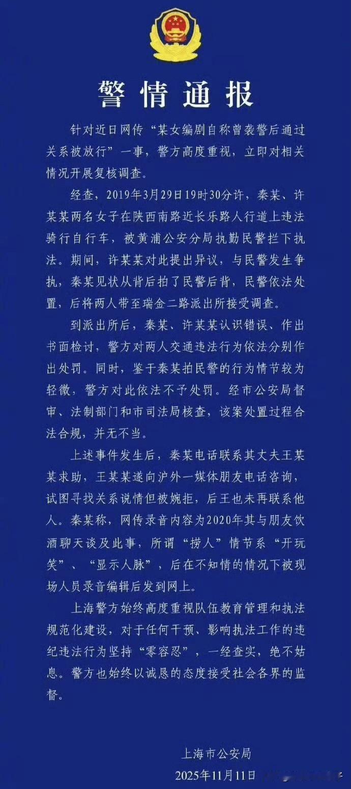 好家伙,原来秦雯编造袭警捞人情节,就是为了显示人脉! 11月11日,据媒体报道,
