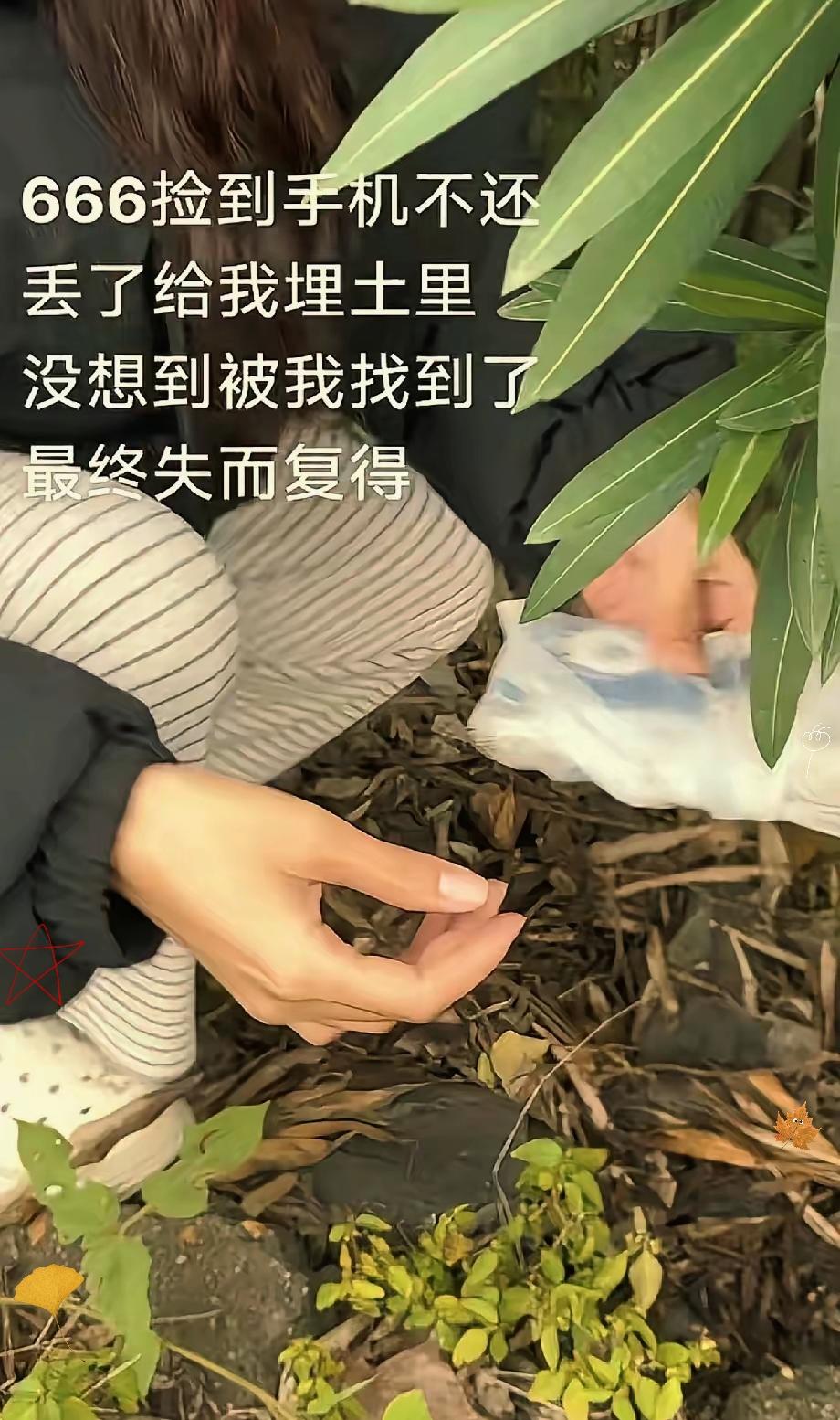 家人们,你们绝对想不到!江西一女子丢了手机,打电话没人接,好在手机开了防丢失模式,一路追到荒地。这要是没这功能,手机被人埋在土里,根本找不回来。 有人捡到不还也就罢了,还把手机裹塑料袋、压石头埋起来,这做法太损了。手机对这人可能没啥用,对失主却是资料宝库。 咱得明白,占小便宜没好下场。捡到东西主动归还,这不仅是美德,说不定还有意外收获。 大伙赶紧检查手机防丢设置,别等丢了才后悔。你们说,这人为啥要把手机埋了呢?评论区聊聊。
