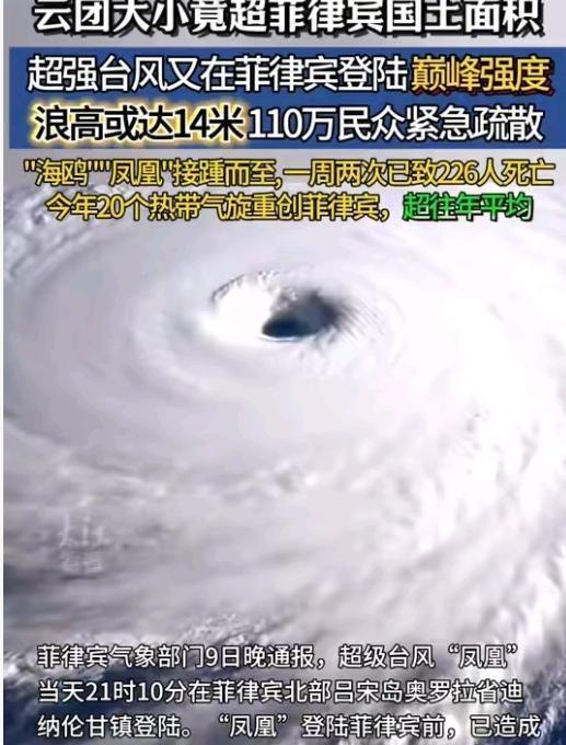 一周双台 重创菲律宾: 天灾之下的人祸之痛 11月11日,菲律宾国家减灾管理委员会紧急通报台风“凤凰”灾情。这场裹挟16级狂风(230公里/小时)的灾害,让刚遭台风“海鸥”重创的菲律宾雪上加霜。截至11日6时,“凤凰”已造成6人遇难、235万人受灾,379处区域遭遇洪水侵袭,4000余座房屋损毁严重。 卡坦端内斯省居民卡萨里诺描述,清晨7点海浪咆哮着拍打海堤,地面都在震动;吕宋岛的教堂避难所也未能幸免,洪水漫至入口一半高度。而一周前的“海鸥”已夺走224条生命,造成109人失踪。 目前91万民众紧急撤离,1035个市镇停课、823个市镇停工,但腐败导致的防灾工程失效更令人痛心——宿务省32亿人民币防洪项目竟一冲就垮。更讽刺的是,灾情预警时,宿务7位市长仍在欧洲私人访问,西方盟友仅提供100万美元援助,不及损失的万分之三。这场灾难本可因尽责履职和资金到位减轻,天灾之下的人祸更显沉重。
