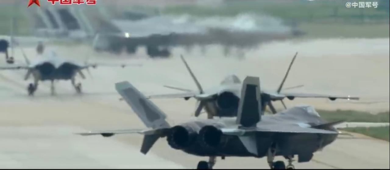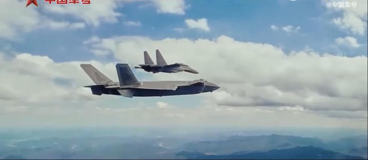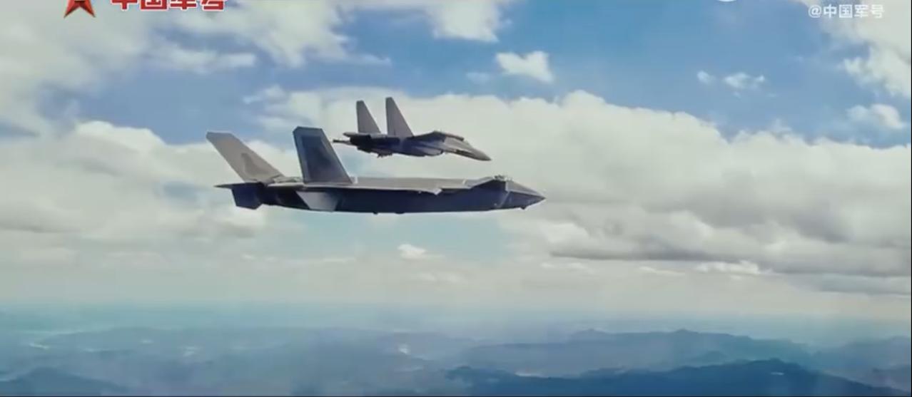隐形战斗机歼-20、歼-20S、歼-35A,与歼-16重型战斗机,无人隐形战斗机协同进行作战演练的画面,其中歼-20还发射了一枚空空导弹。