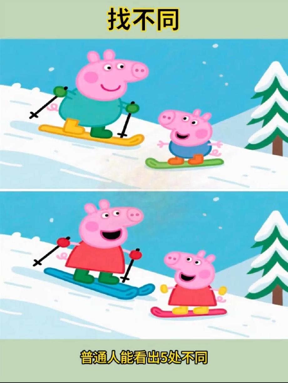 谁是火眼金睛?这张佩奇滑雪图藏了N处不同,我赌你找不全!评论区晒战绩!