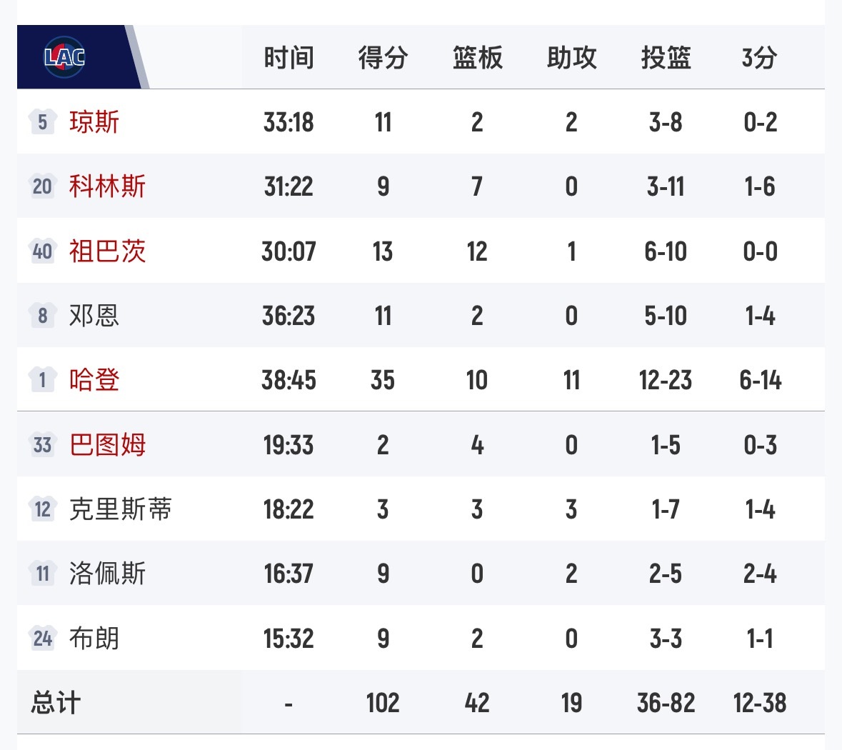 绝望!哈登出战39分钟,23投13中,三分14中6,空砍35分10板11助攻。
