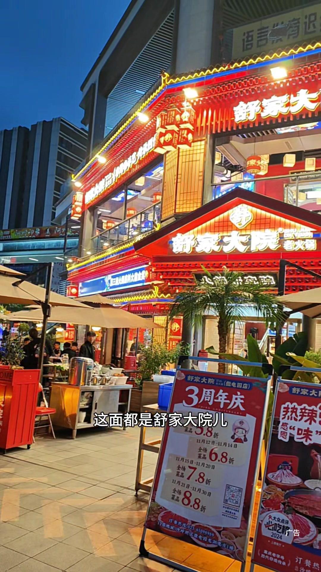 重庆这家周年庆火锅也太会了!人均几十吃到撑 微电园天街这家舒家大院,最近三周年庆活动力度真的很大。 上下两层楼都坐满了人,叔叔阿姨们忙得脚不沾地,一锅接一锅的火锅端上桌,看着就烟火气十足。 最惊喜的是还有自助区随便拿,菜品新鲜丰富,完全不用担心吃不饱。 不管是团建聚餐还是朋友请客,来这里都超合适,性价比真的很高,难怪人气这么旺。 趁着活动赶紧冲,晚了可能就要排队啦!