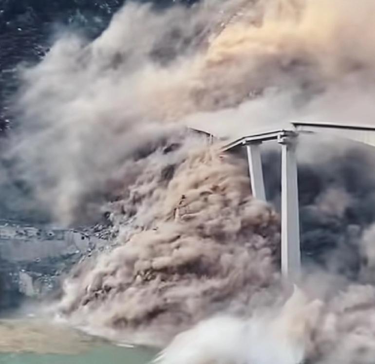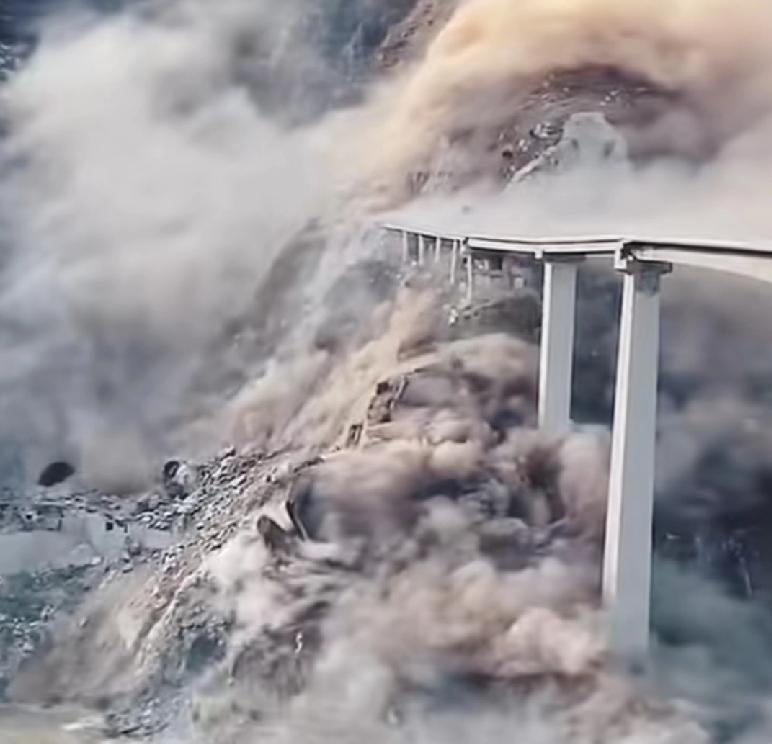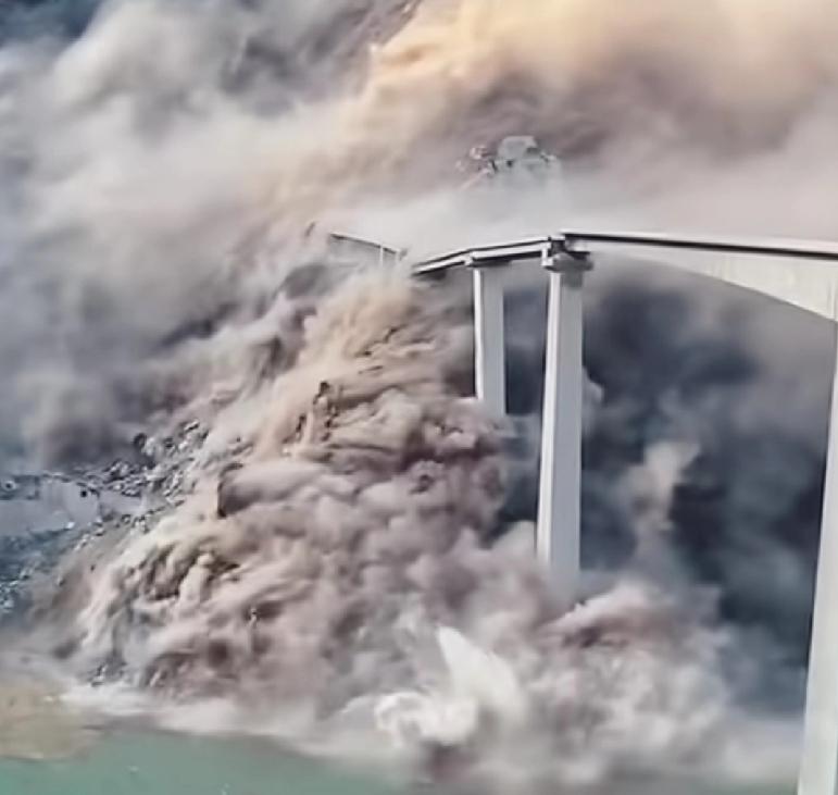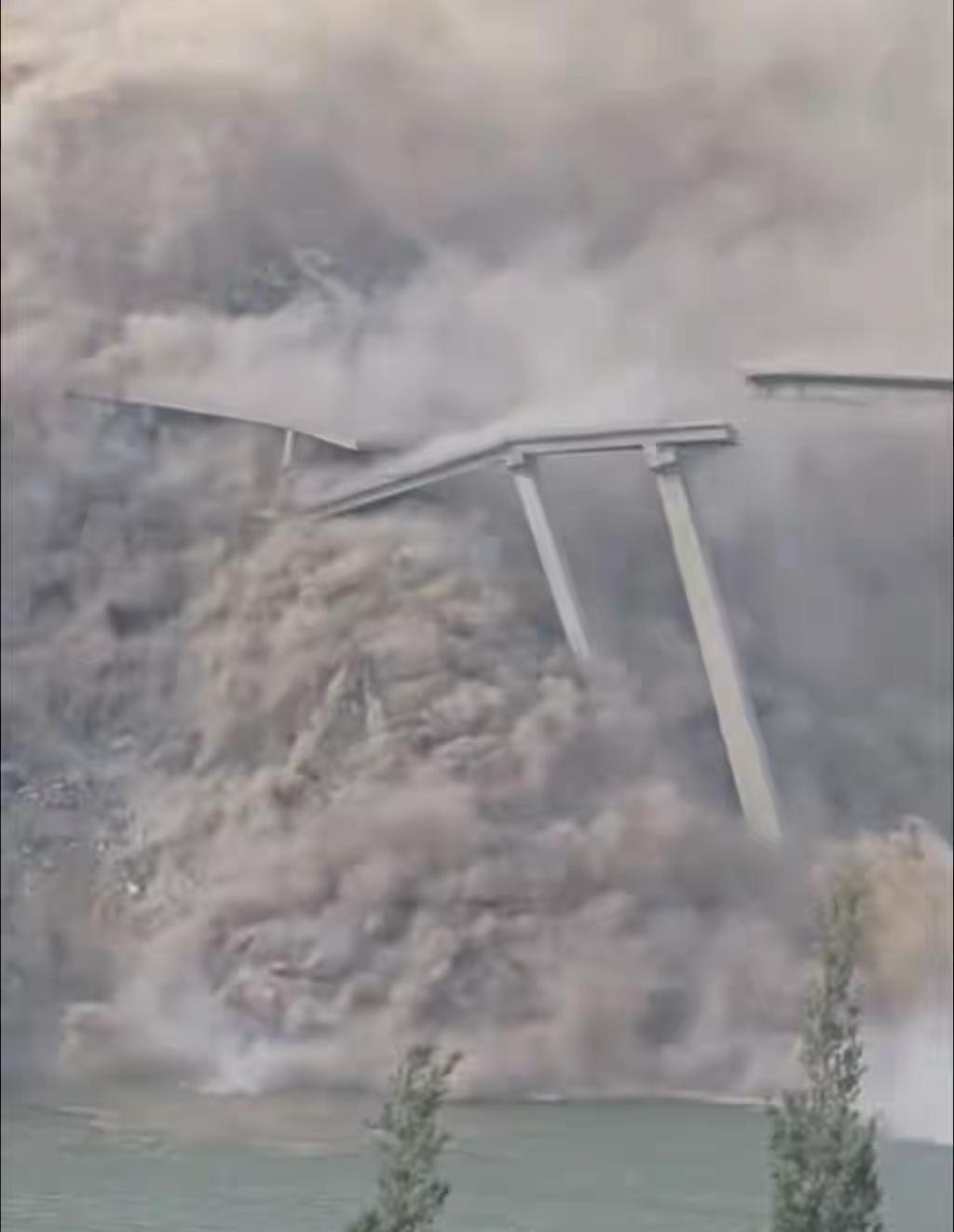今日突发!10日发现险情,11日16点左右发生垮塌,四川阿坝红旗特大桥发生垮塌,而此时距今年1月主跨刚合龙还不满1年。今天(11月11日),有网友爆料称四川省阿坝州马尔康市双江口水电站红旗特大桥发生垮塌。现场视频显示,有大量碎石从山坡上滚落而下,激起巨大烟尘,受到冲击的桥体不堪打击,部分桥体发生垮塌,坠入下方河中。据悉,由于提前一天发现滑坡险情,对此桥实施了交通管制,事故没有造成人员伤亡。初步研判裂缝险情是因旁边山体发生滑坡导致。目前,相关调查和后续工作正在进行中。热点 四川阿坝红旗特大桥今天发生垮塌