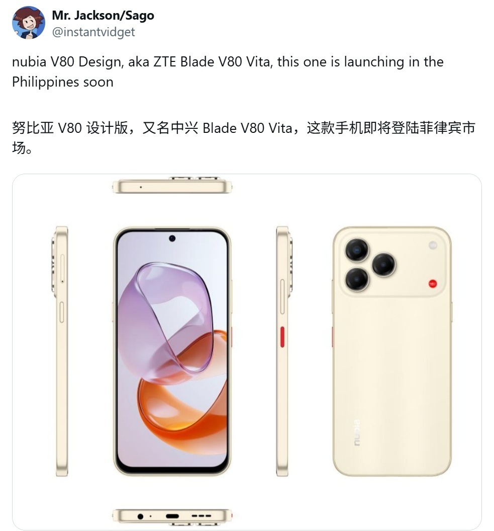 万万没想到,第一个跟进这个造型的是中兴 Blade V80 Vita,或者(努比亚 V80 Design)还提前把相机小红圈给占了