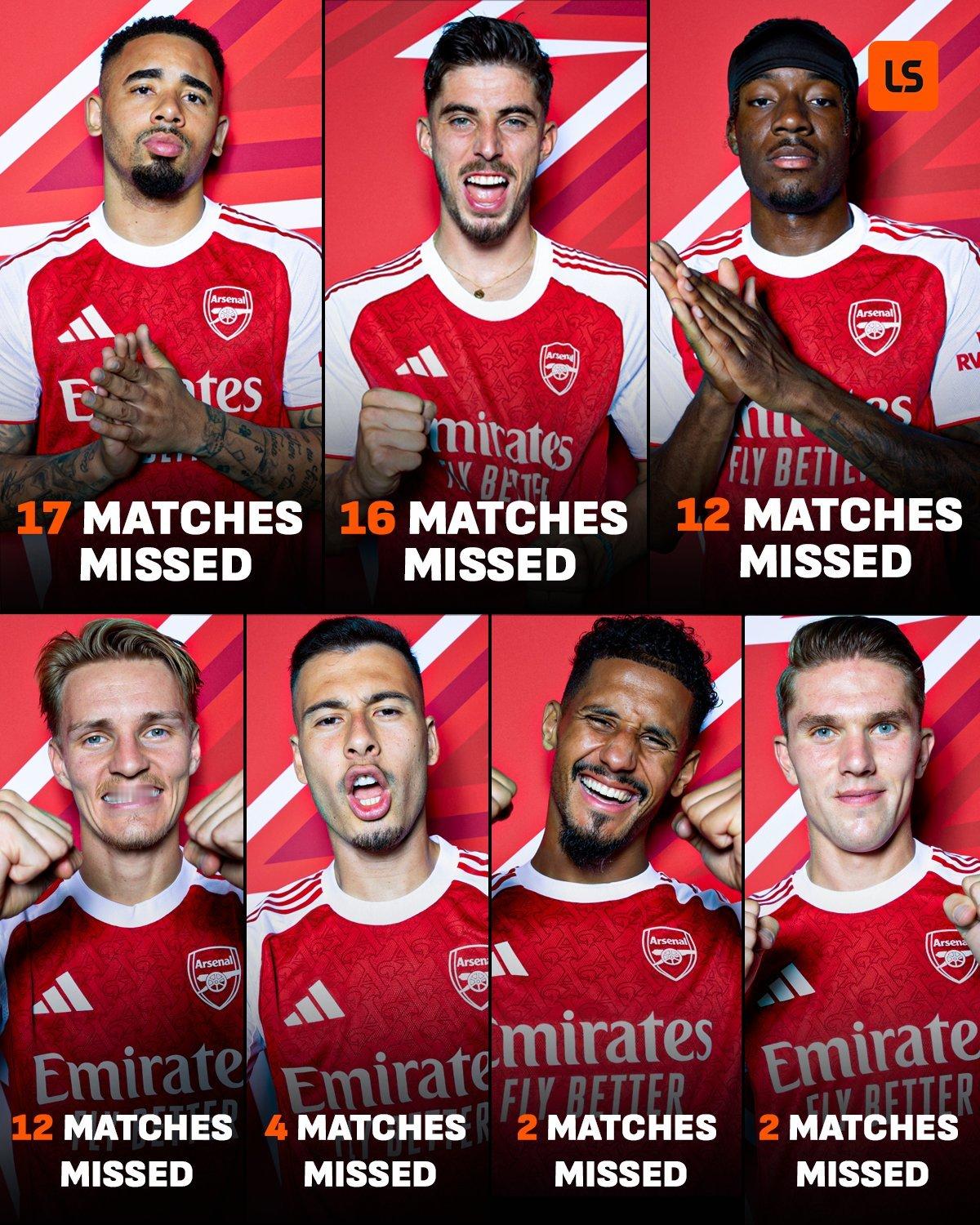 25-26赛季至今伤员缺席场次:开赛以来各项赛事枪手已完赛17场,热苏斯全部缺席,哈弗茨16场,马杜埃凯厄队12场,小马丁4场,萨利巴约克雷斯2场,如果没有夏窗历史性的操作,欧冠全胜跟英超暂排榜首恐怕是其他球队的战绩!本月国际比赛日后伤员才能陆续回归应对即将开启的又一段魔鬼赛程
