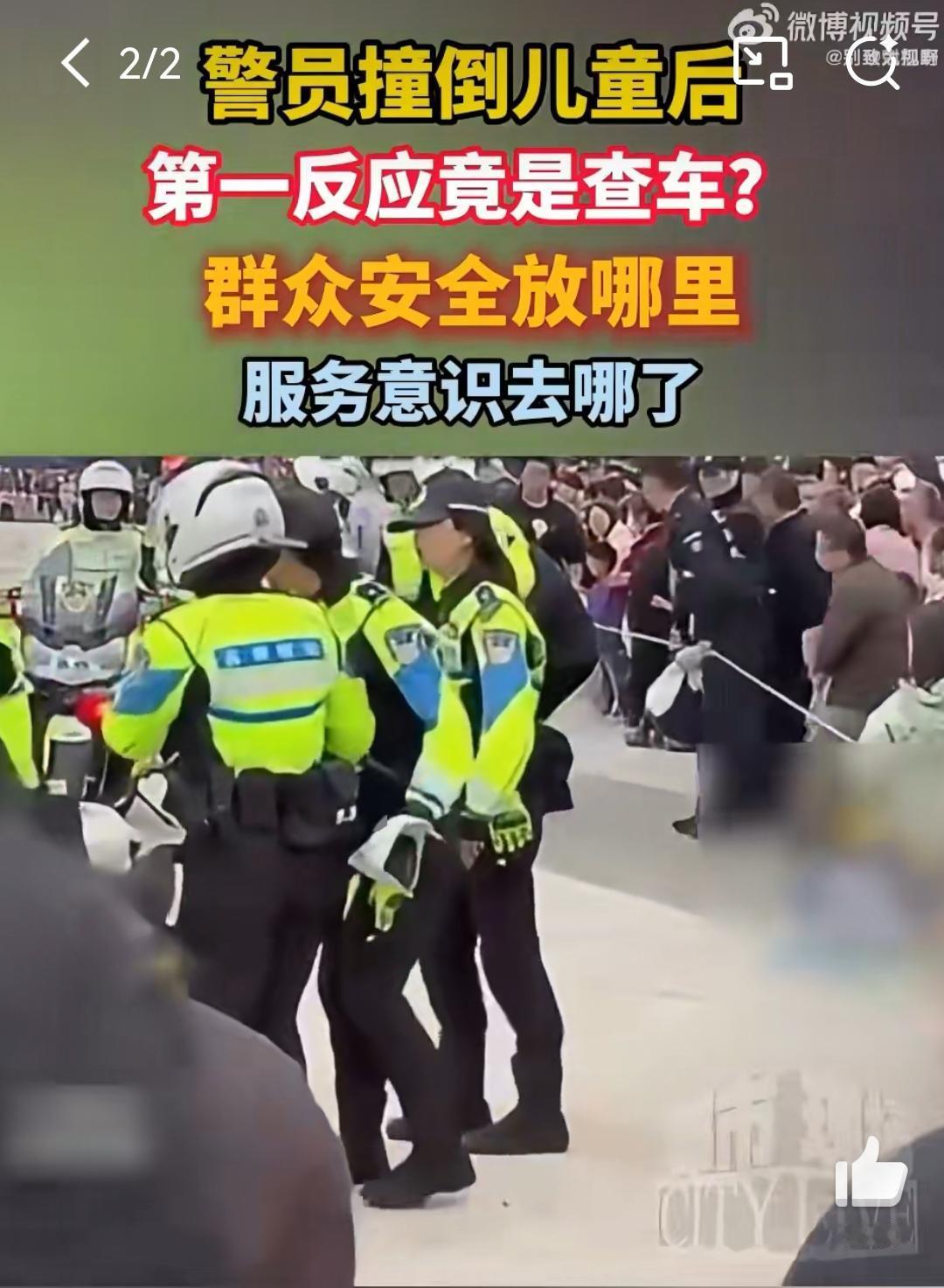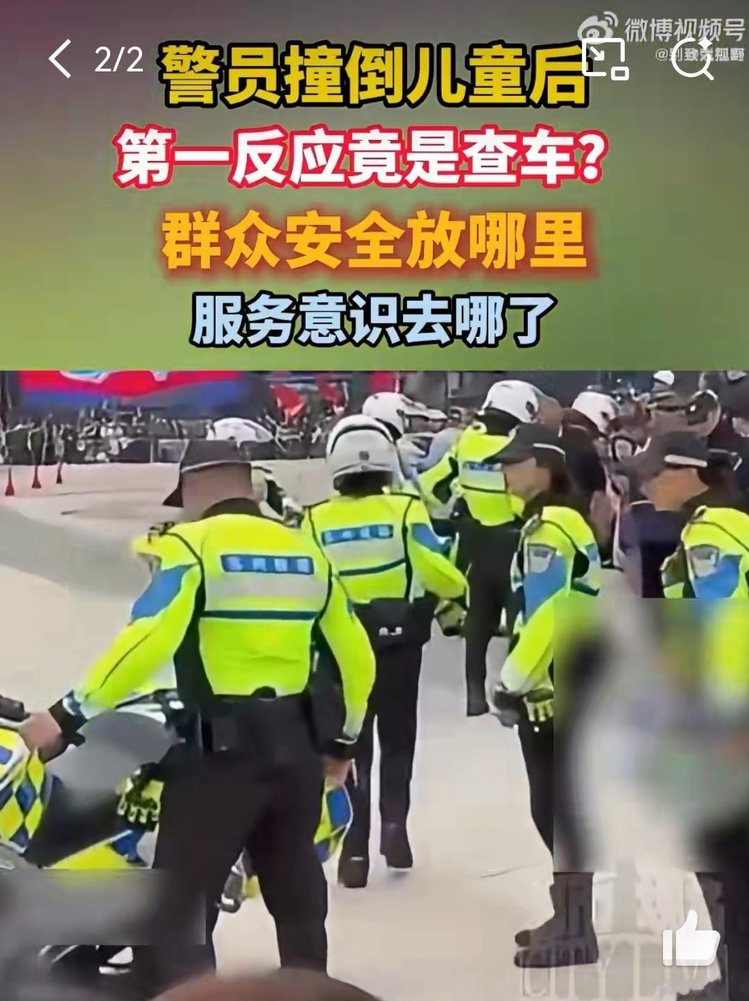 这个女警察这个下意识的动作与警察的宗旨,差的太远了!儿童被撞得连滚带爬,你却无动于衷,没法原谅!