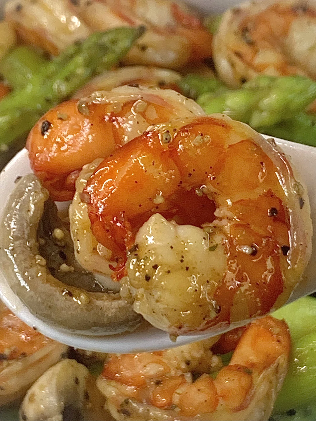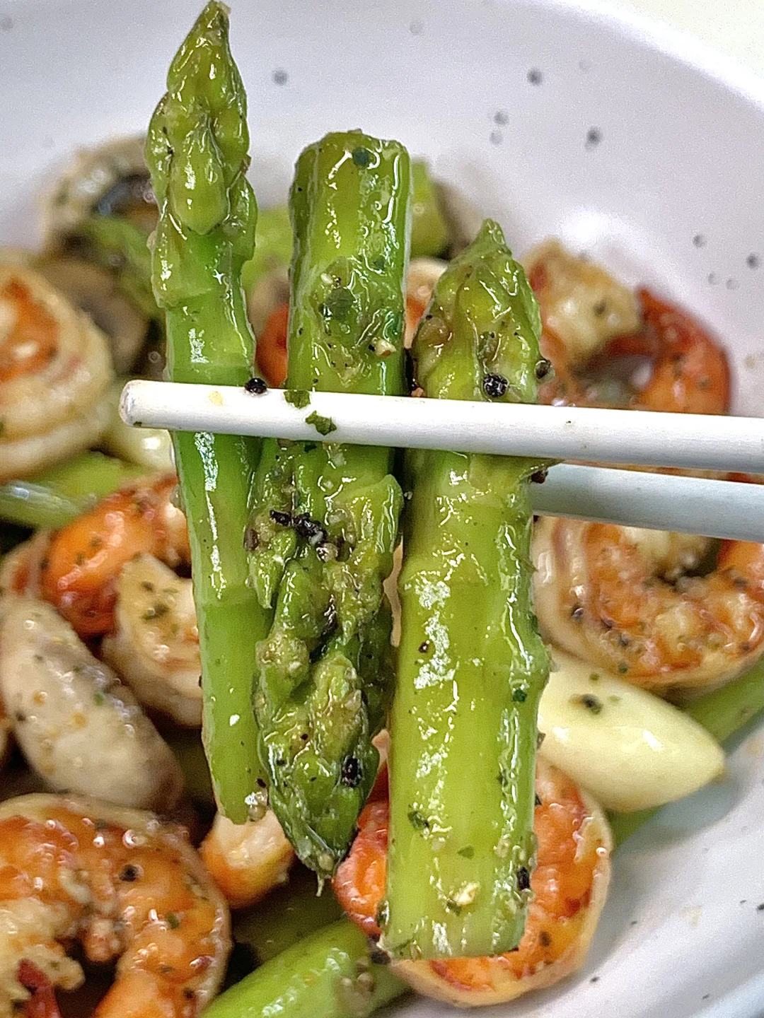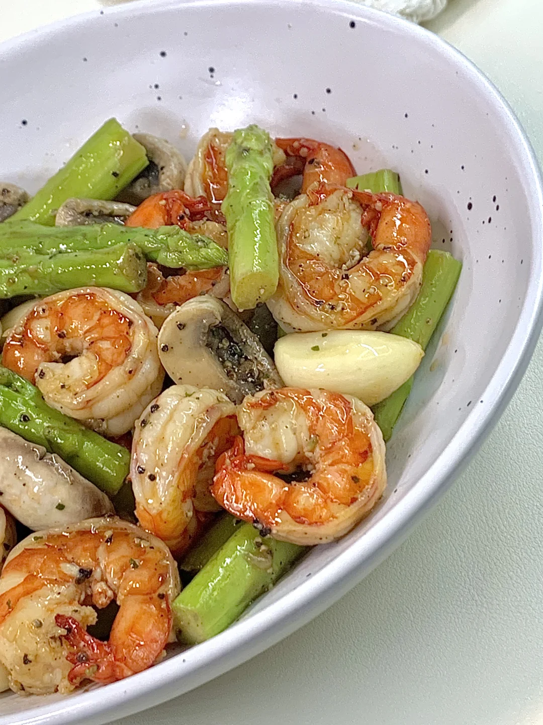 姐妹们,今天分享这个虾仁芦笋口蘑[黄金薯R]! 真的巨好吃哇!!! 芦笋脆爽,口蘑鲜美,[扯脸H]虾仁Q弹鲜美巨好吃! 真的好绝!!! 剪纸姐妹们快去试试!! [彩虹R]食材:虾仁、口蘑、芦笋、蒜粒 做法:虾仁胡椒粉和料酒腌制10分钟 锅里放少许油虾仁煎熟盛出备用,芦笋焯水捞出,锅里放少许油口蘑和蒜粒炒软,放入芦笋炒匀 加入虾仁和黑胡椒 蚝油 适量盐炒匀即可出锅啦~