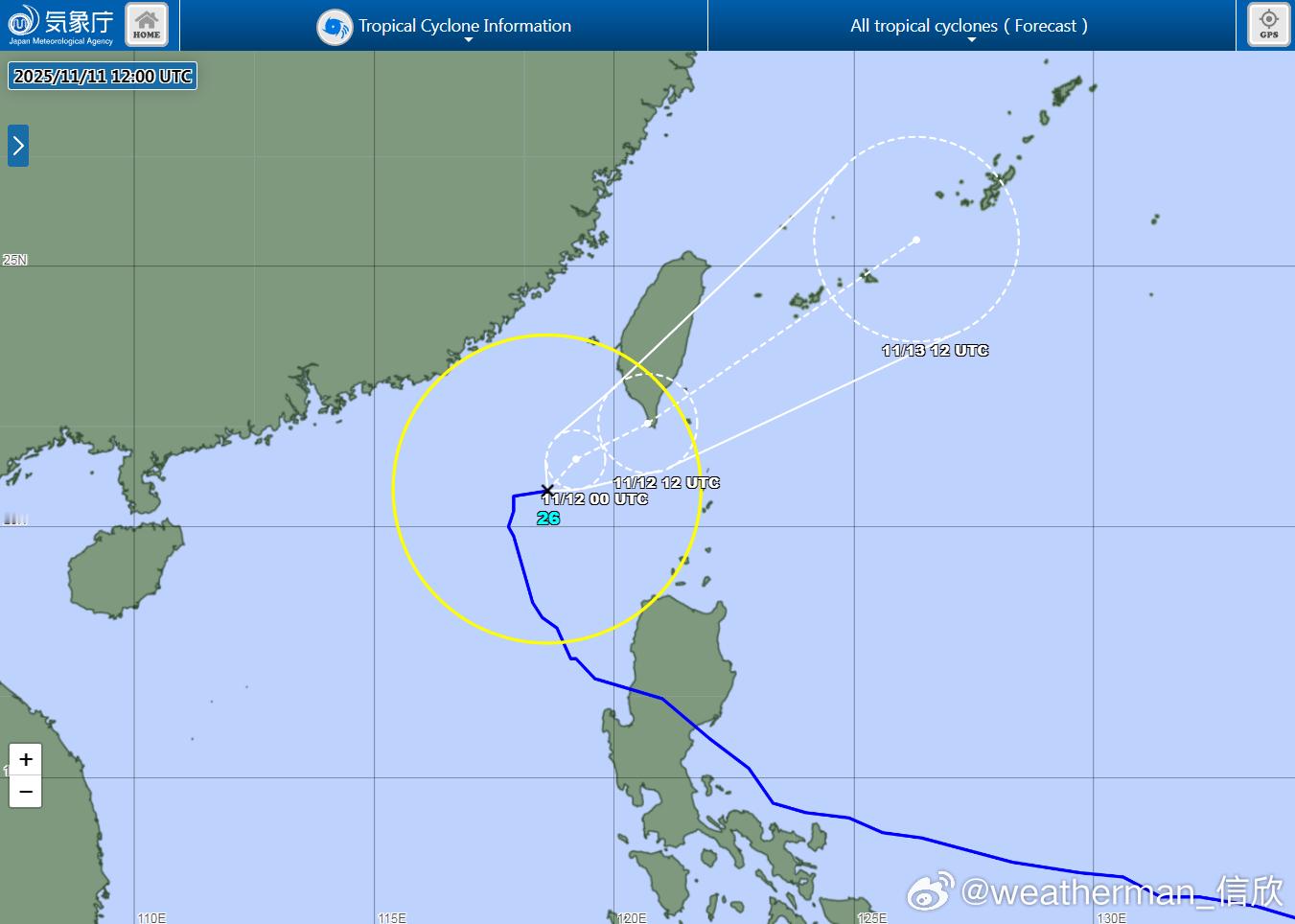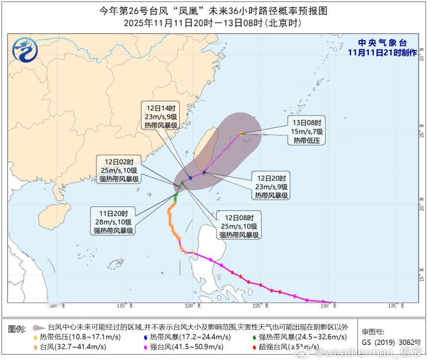 今天下午台风凤凰已经减弱为强热带风暴,未来向东北方向移动,强度继续减弱,可能在1