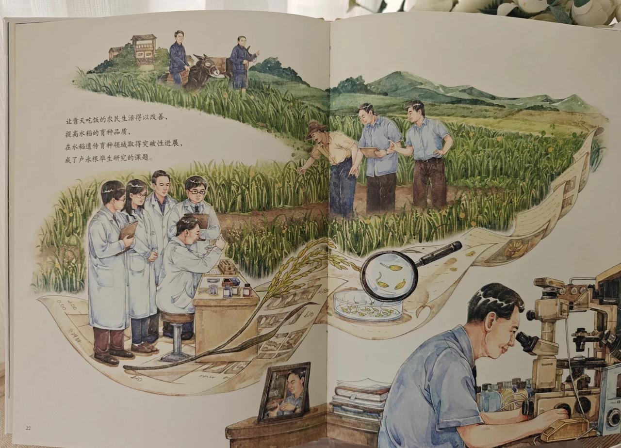 🌾识得神州稻谷香,卢永根的故事 读书笔记 出生于香港中产家庭,祖籍广东花县,中国科学院院士、著名水稻遗传学家,被誉为“布衣院士”。他一生扎根农业科研与教育,以赤诚之心践行兴农报国之志。攻克水稻难题,还捐尽积蓄。他的朴素与赤诚,让每粒稻谷都藏着家国情怀。 📚《识得神州稻谷香:卢永根的故事》 所属丛书《“共和国脊梁” 科学家绘本》共三辑,每辑八位科学家。 该套系共24册 🏆获奖情况: 该套丛书 🎖️入选中宣部 2019 年主题出版重点出版物 🎖️获得 2020 年国家出版基金资助 🎖️获第六届中国科普作家协会优秀科普作品奖科普图书类金奖 🎖️2020 桂冠童书主题图书类奖 🎖️2022 年向全国青少年推荐百种优秀出版物 🎖️等三十余项荣誉。 🧒适合年龄:5-12 岁 📝故事分享: 少年时,香港沦陷的经历让他深感亡国之痛。高中就读香港培侨中学时,受共产党员老师影响走上革命道路,1949年秘密加入中共地下党后,放弃香港安逸生活返回内地,进入岭南大学投身革命与学业。1952年院系调整后转入华南农学院,深耕水稻遗传研究。1993年当选中科院院士,毕生扩充野生稻种基因库至1万多份,培育33个农作物新品种推广超千万亩,新增产值15亿多元。生活极简的他,2017年捐出880余万元积蓄设教育基金,2019年逝世后捐出遗体,夫人代捐1万元党费。他获“感动中国2017年度人物”“时代楷模”等称号,用一生诠释“把根扎在泥土里”的科学家情怀。 🪴我和孩子关于这本书,交流了这些: 1、卢永根先生心中的种子是怎么种下的? 2、卢永根先生他生活很节俭,却捐出全部积蓄,这是为什么? 3、你觉得为什么编辑老师,要将吴良镛先生写入《“共和国脊梁” 科学家绘本》这个套系? 🧩图书信息: 16开本,约3万字 小学生书单 经典好书 科学家精神 童书推荐