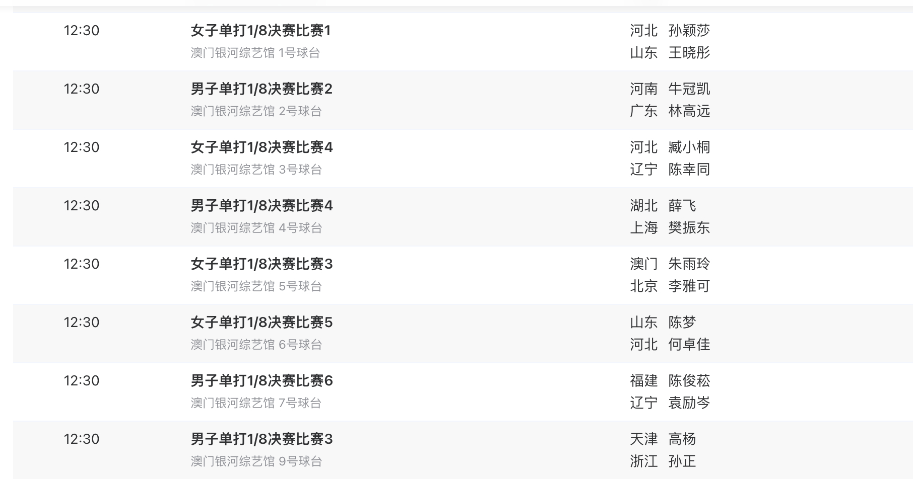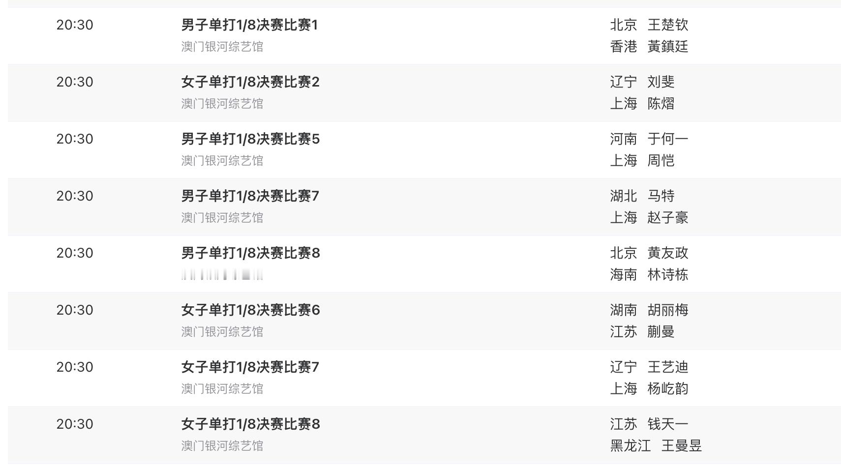 今天,十五运会乒乓球男女单打比赛将进行1/8决赛争夺。具体赛程如下:12:30孙颖莎、林高远、陈幸同、樊振东、陈梦等出战,20:30王楚钦、林诗栋、蒯曼、王艺迪、王曼昱等出战。