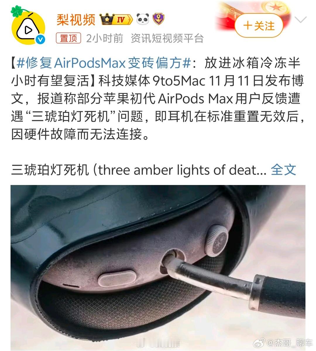 苹果看了都得沉默官方修要大几百,社区偏方冰箱冻。原理是热胀冷缩救电线,这操作也太野了哈哈~
