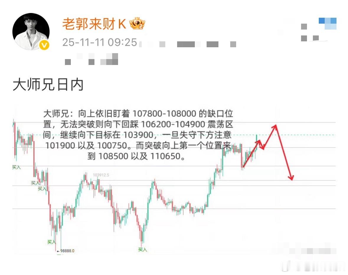 大师兄加更:反覃必须破 104000 才能继续有机会上去,下方 102800 守
