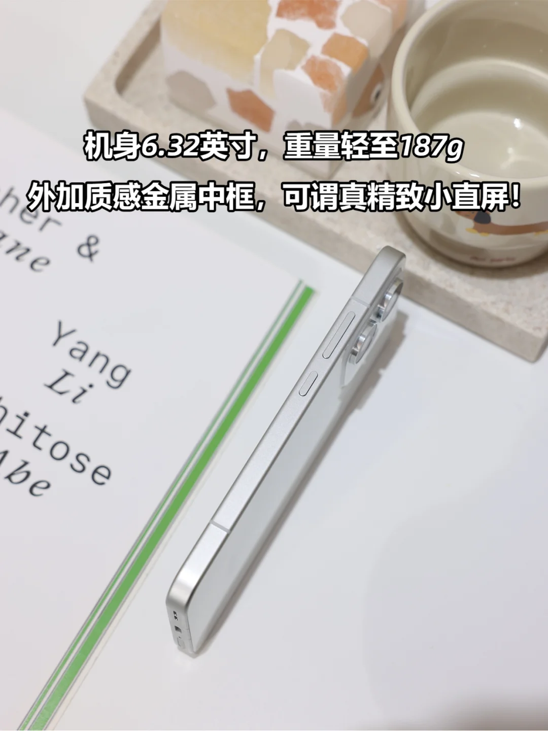 📱再说下它的其他外观设计:有3个配色,个人被星光蝴蝶结的配色给惊艳到了,主打一个高贵冷艳!!另外总体采用运动芭蕾美学设计,机身仅6.32英寸,重量轻至187g,拧不开瓶盖的女生轻松拎起,它的屏幕为极窄四等边,不会出现大又丑的屏幕黑边,再搭配金属质感的中框,总体非常符合女生对手机审美的追求,真可谓精致小直屏,轻薄颜值高的同时质感拉满!