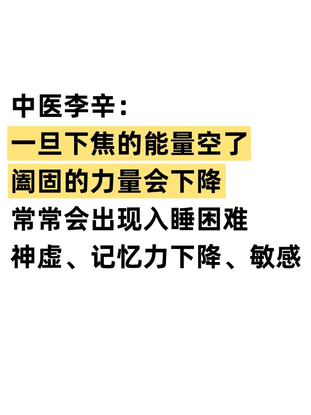 这是下焦的能量根基空了,精神没了支撑的表现。那该怎么巩固下焦?