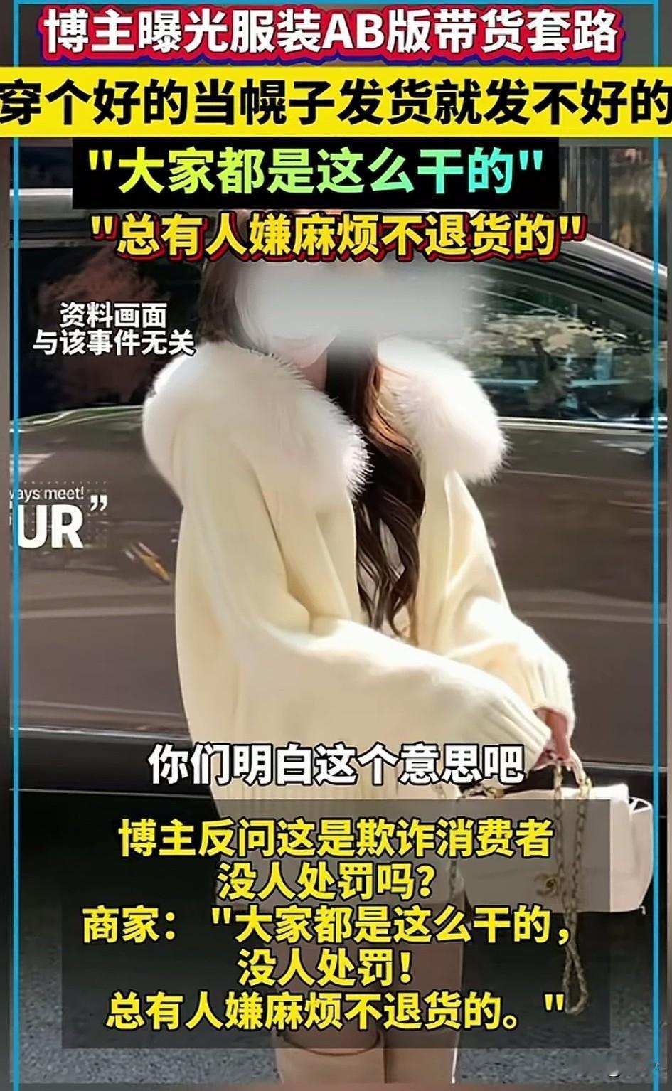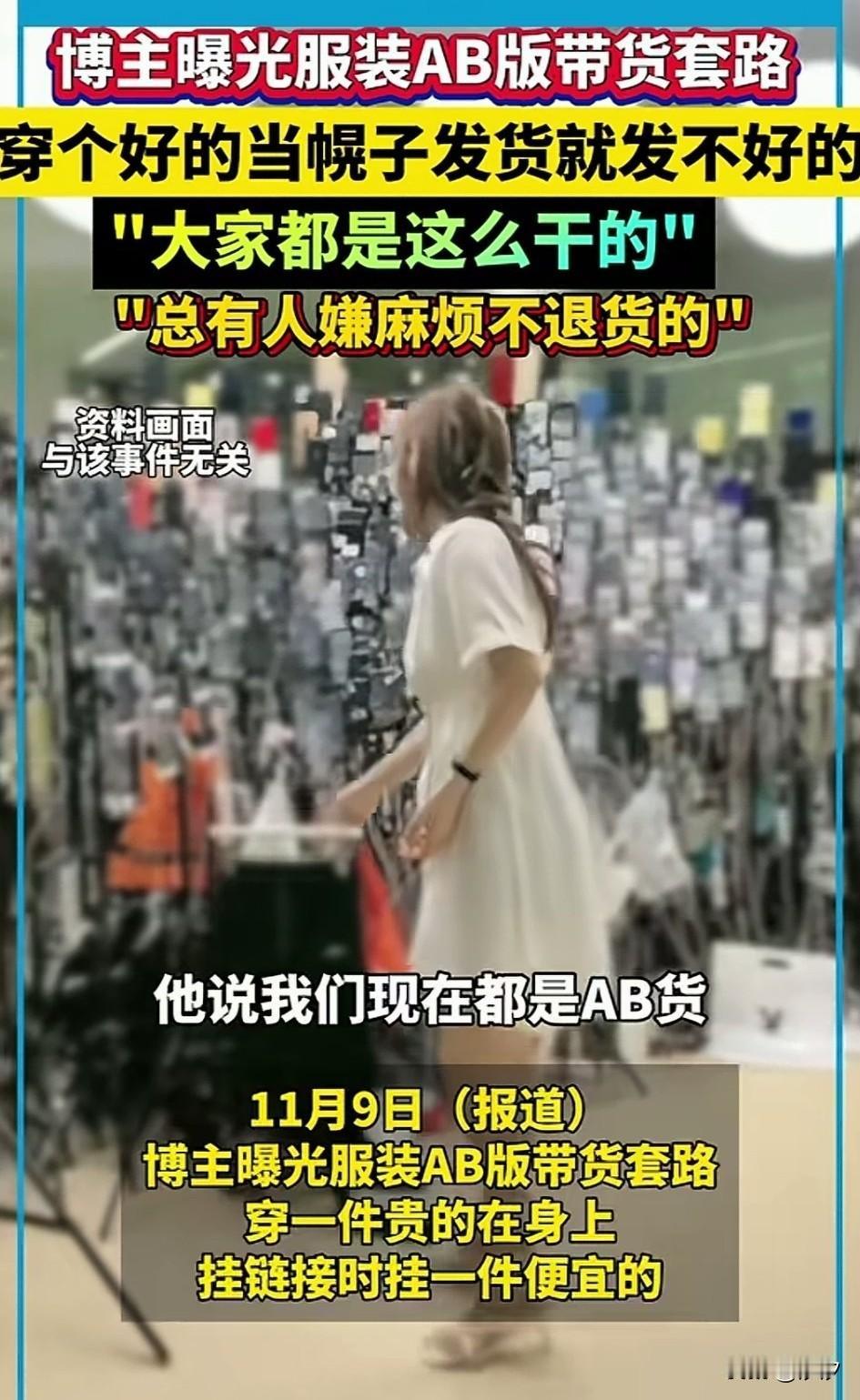 女博主揭秘直播带货, 屏幕前的衣服都是好的, 你买了就是不好的, 俗称 直播AB货, 女子都震惊了, 问了网点老板, 这不是违法吗? 老板说这没啥说的, 大家都这样干的, 你不要想那么多, 毕竟卖出的多捏的工资就会很高! 女博主听到后气愤不已, 于是就把这事给曝光了, 大家看看自己网购是否会遇到这种AB版本货物呢? 直播间买货避坑 直播带货乱象 直播购物心理 直播带货避雷 主播带货
