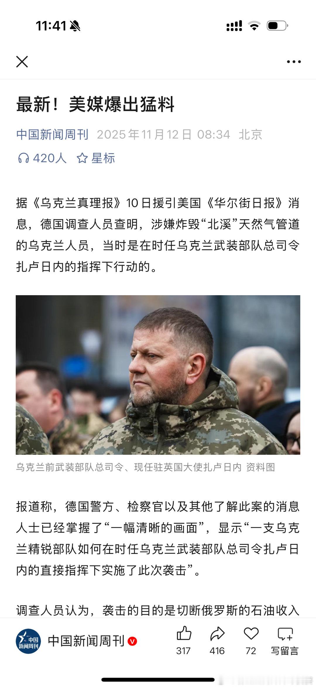美媒《华尔街日报》爆出猛料,称北溪管道被炸毁是在原乌克兰武装部队总司令扎卢日内的指挥下行动的。这事是老扎指挥的其实大家并不意外,意外的是能够在这个时间节点爆出来。同时还爆出泽连斯基亲信贪腐信息。只能说,美国已经公开抛弃了乌克兰。
