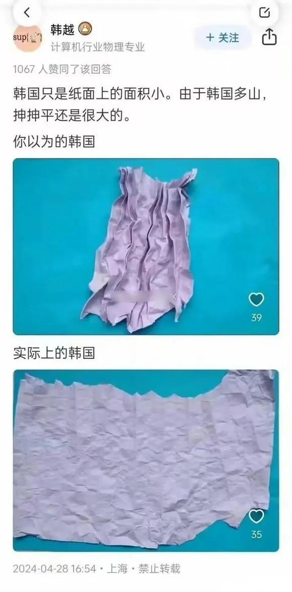 我不反对这个理论,你倒是把他撵平了,利用起来啊。你要是这么说那把青藏高原的土方搬去填海削成平原那我们国家岂不是国土面积世界第一了?问题是你想填就填,想抻就抻的?坏事拼命的往中国推,好事拼命往怀里揽,见不得说一点坏话,这群人现实没见过。说得好像韩国的人和动植物受到的地球引力都是垂直于地表而不是竖直向下的似的。你要这么说我可就给你买个熨斗了啊。